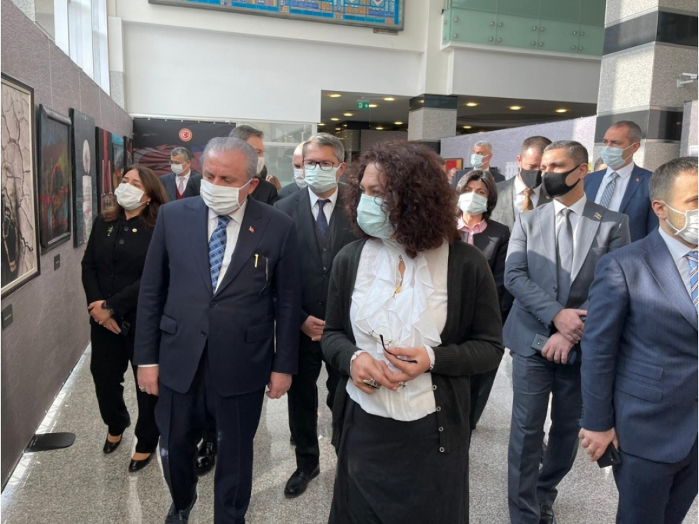 Sonra iştirakçılar parlamentdə sərgilənən Türkiyənin Qazi Universitetinin tələbələrinin Xocalı soyqırımı mövzusunda çəkdikləri rəsmlərə, eləcə də təcavüzkar Ermənistanın otuz il işğalda saxladığı və Müzəffər Ali Baş Komandan İlham Əliyevin komandanlığı ilə yenilməz Ordumuzun azad etdiyi ərazilərin dəhşətli görüntülərini əks etdirən fotosərgiyə baxıblar.