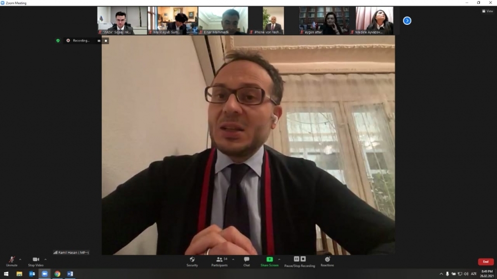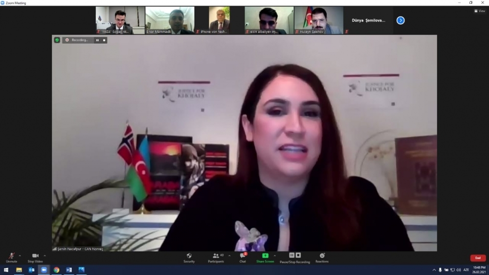 “İki shail” xəbər verir ki, birliyin Beynəlxalq və İctimaiyyətlə Əlaqələr departamentinin direktoru Elnar Məmmədlinin verdiyi məlumata görə bu, İMZA-nın Xocalı soyqırımına həsr olunmuş ilk beynəlxalq tədbiri idi. Onlayn formatda keçirilən konfransa böyük maraq var idi. Dünyanın ondan artıq ölkəsindən yüzdən çox iştirakçının qatıldığı tədbir dövlət himnimizin ifası ilə başladı. Sonra Xocalı qətliamı zamanı, həmçinin Azərbaycanın müstəqilliyi, suverenliyi və ərazi bütövlüyü uğrunda həlak olmuş əziz şəhidlərimizin xatirəsi bir dəqiqəlik sükutla anıldı. Faciədən bəhs edən video-çarx nümayiş etdirildi. İMZA-nın Yerli və Beynəlxalq Layihələr departamentinin direktoru, layihənin müəllifi Emil Bayramov erməni faşizminin növbəti qurbanı olmuş Xocalı və onun günahsız dinc sakinlərinin faciəsi barəsində məlumat verdi. Dedi ki, bu soyqırımı cinayətini törədən Ermənistan faktiki olaraq dövlət səviyyəsində terror siyasəti yürüdən ölkə olduğunu sübut edib. Sonra beynəlxalq konfransın moderatoru Elnar Məmmədli iştirakçılara İctimai Birliyin bu layihəsinin məqsədi barəsində məlumat verdi. Bildirdi ki, onlayn konfrans 2008-ci ildə Heydər Əliyev Fondunun vitse-prezidenti Leyla Əliyevanın başlatdığı və bu illər ərzində uğurla reallaşdırılan “Xocalıya ədalət” beynəlxalq maarifləndirmə kampaniyasına dəstək məqsədi ilə keçirilir.