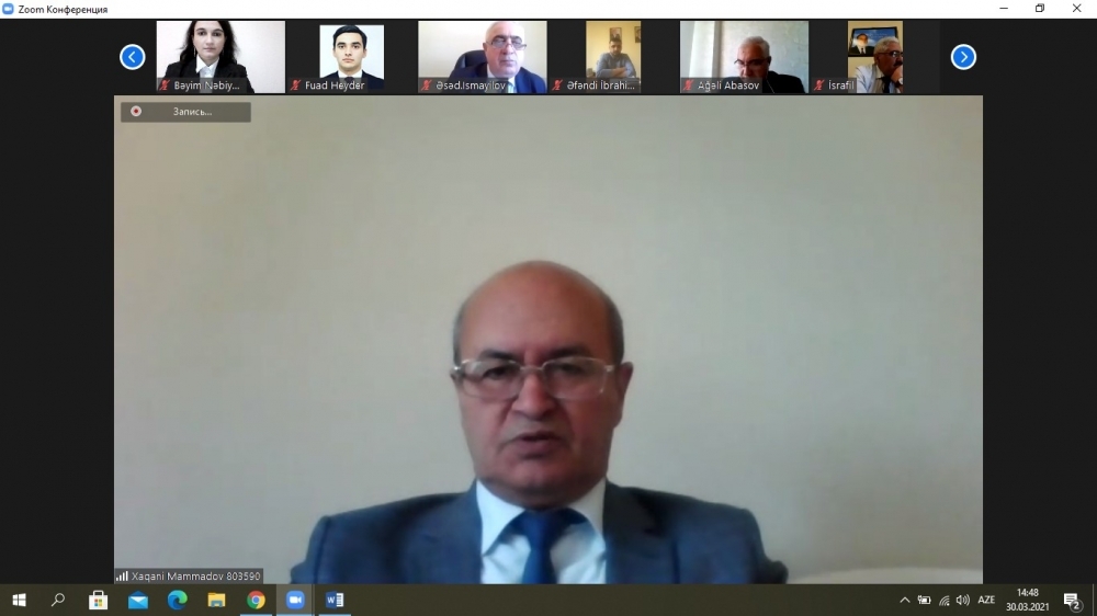 Prof. Xaqani Məmmədov 1918-ci il Mart qırğınlarını, azərbaycanlılara qarşı törədilən soyqırımı xronoloji ardıcıllıq və tarixi faktlarla təhlil etdi. Bildirildi ki, xalqımız bu hadisələrdən layiqli tarixi dərslər çıxarmalı, bu qətliamların səbəbkarlarını, icraçılarını və erməni havadarlarını yaxşı tanımalı, faciə qurbanlarının əziz xatirəsini əbədi yaşatmalıdır.