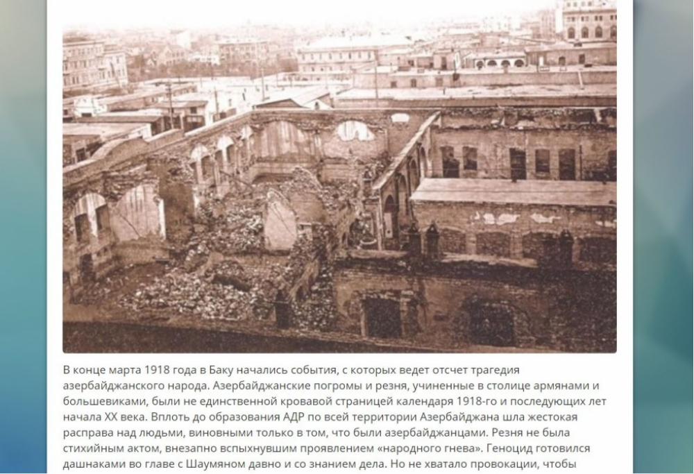 Yazıda vurğulanır ki, XX əsrin əvvəlində əhalisinin əksəriyyəti azərbaycanlılardan ibarət olan İrəvan şəhərində və Ermənistanın digər bölgələrində azərbaycanlılar təqiblərə məruz qalıb, qətlə yetirilib, öz yurdlarında kütləvi surətdə qovulublar.