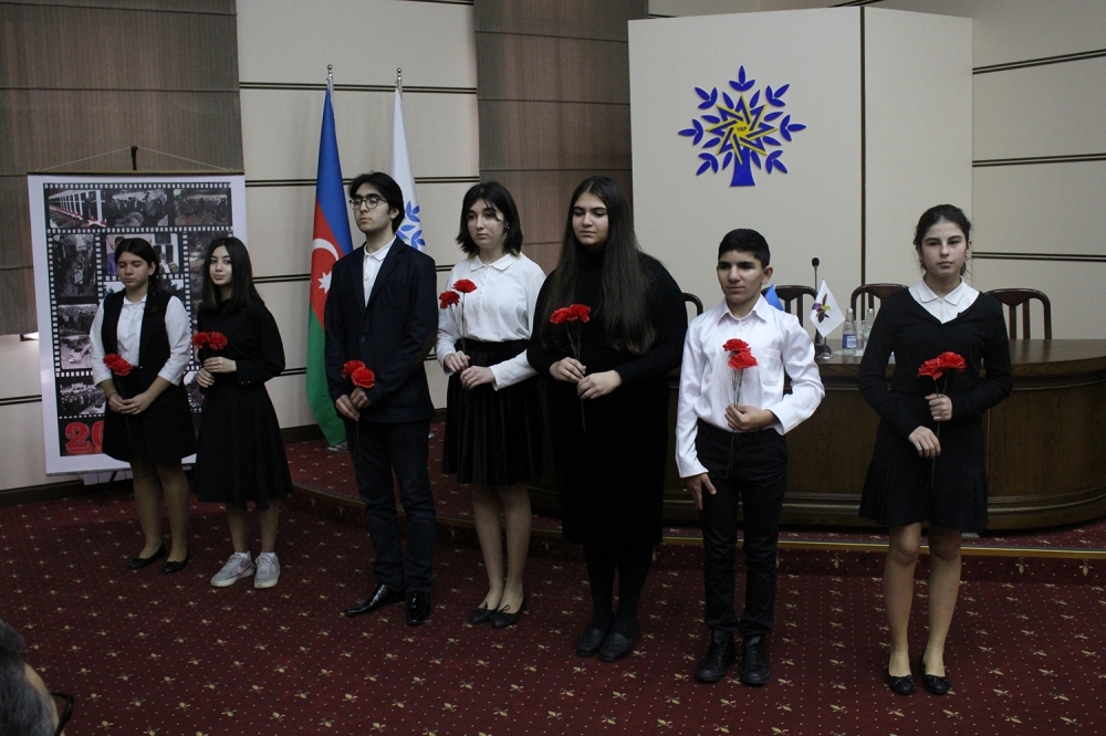 Daha sonra tədbirin bədii hissəsi başlayıb. Respublika İncəsənət Gimnaziyasının şagirdləri 20 Yanvar faciəsinə həsr etdikləri kompozisiyanı təqdim ediblər.