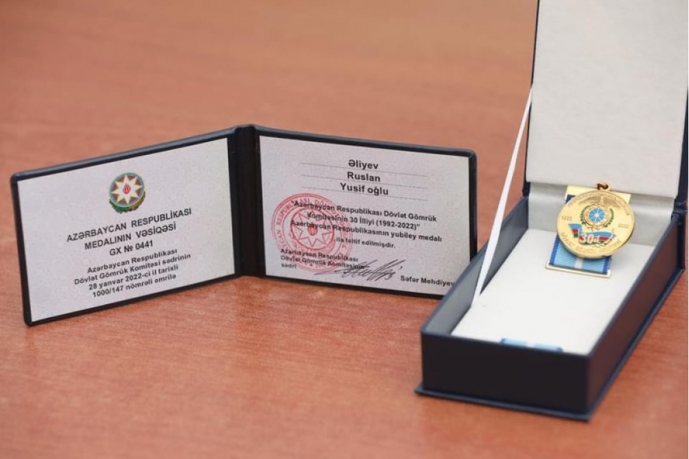 Bildirilir ki, Dövlət Gömrük Komitəsinin sədri Səfər Mehdiyevin müfaviq əmri ilə Gömrük orqanları ilə səmərəli əməkdaşlığa görə "Azəriqaz” İstehsalat Birliyinin baş direktoru Ruslan Əliyev "Azərbaycan Respublikası Dövlət Gömrük Komitəsinin 30 illiyi (1992-2022)” Azərbaycan Respublikasının yubiley medalı ilə təltif edilib.