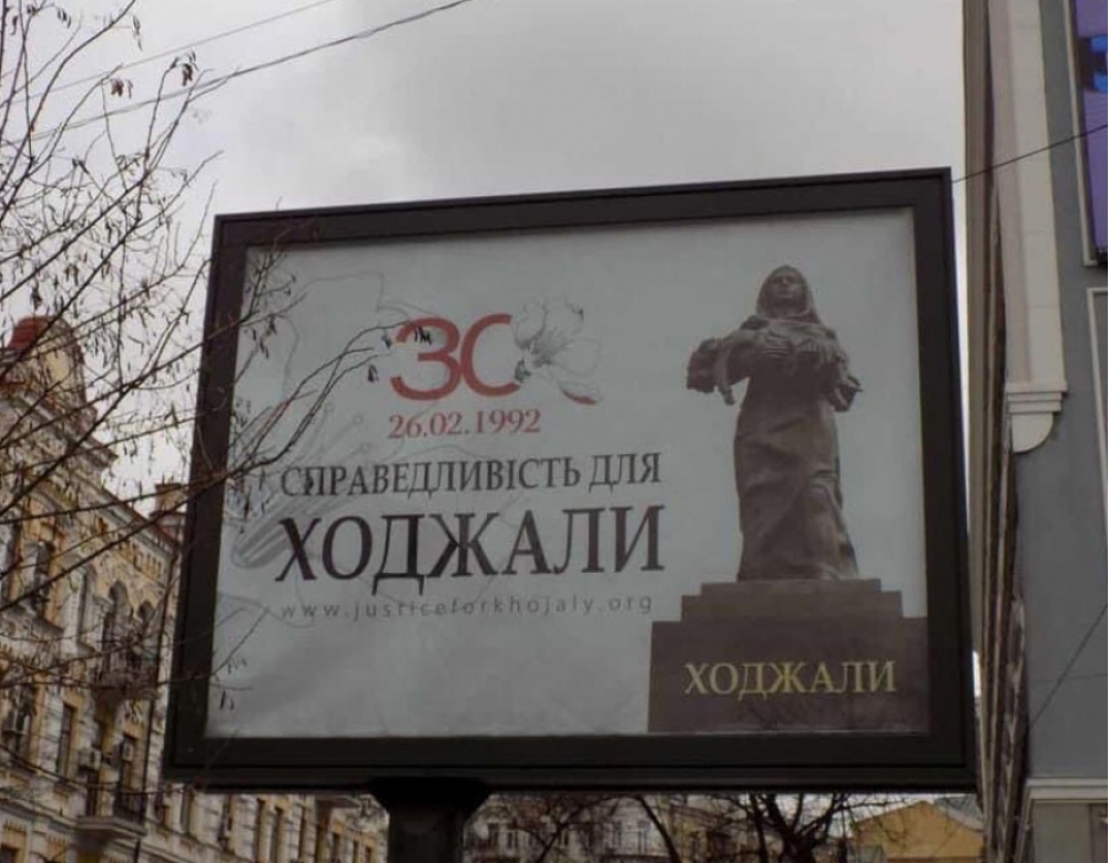 “Xocalıya ədalət!” beynəlxalq məlumatlandırma kampaniyası çərçivəsində Kiyevin mərkəzi ərazilərində Xocalı soyqırımına dair bilbordlar yerləşdirilib.