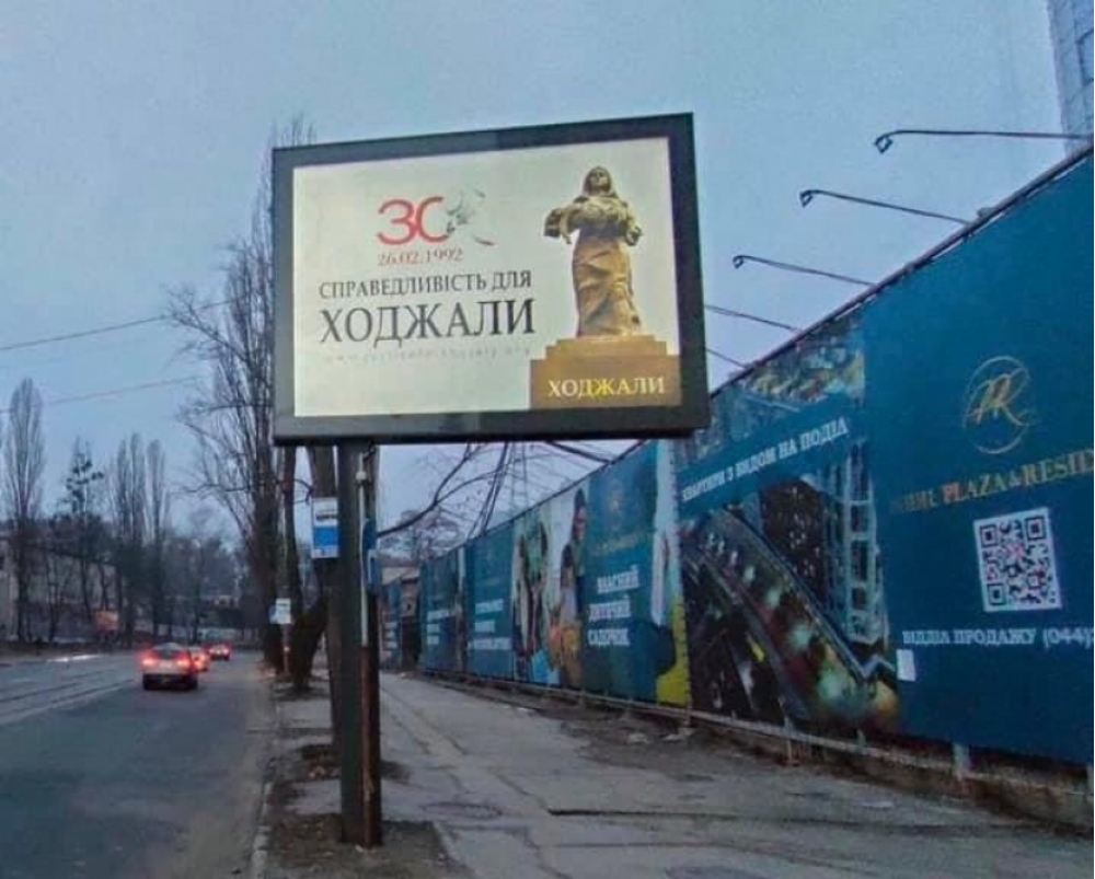 "İki sahil" xəbər verir ki, Ukrayna Azərbaycanlıları Radasının (UAR) təşəbbüsü ilə yerləşdirilən bilbordların məqsədi Xocalı soyqırımı haqqında yerli sakinlərini və xarici vətəndaşları məlumatlandırmaqdır. Bilbordlar Kiyevdə gediş-gəlişin daha sıx olduğu mərkəzi ərazilərdə - Qələbə prospekti, Qliboçitska, Siçovix Striltsa, Lesi Ukrainki küçələri, Kiyev-Borispol avtomobil magistral yolunda yerləşdirilib.