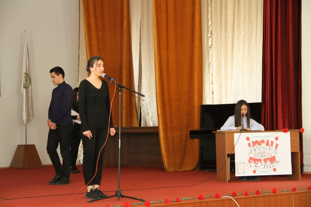 Sonda fakültə tələbələrinin poetik kompozisiyaları və Xocalı faciəsinə həsr olunan video çarx nümayiş olunub.