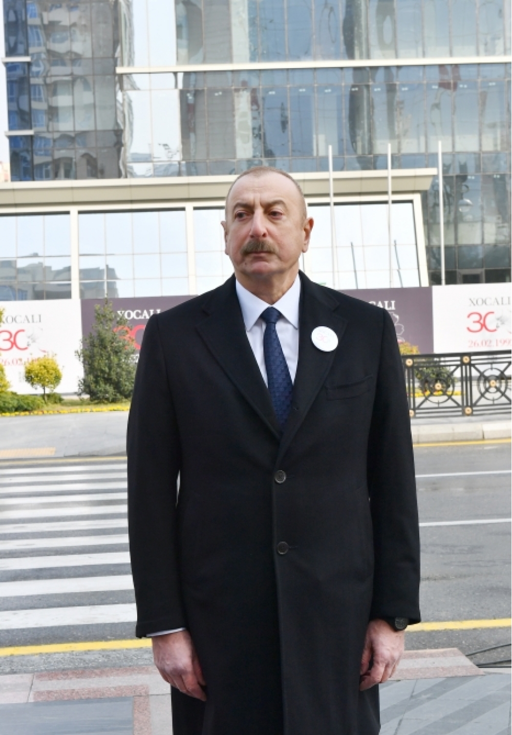 Prezident İlham Əliyev Xocalı soyqırımı abidəsinin önünə əklil qoydu, faciə qurbanlarının xatirəsini ehtiramla yad etdi.