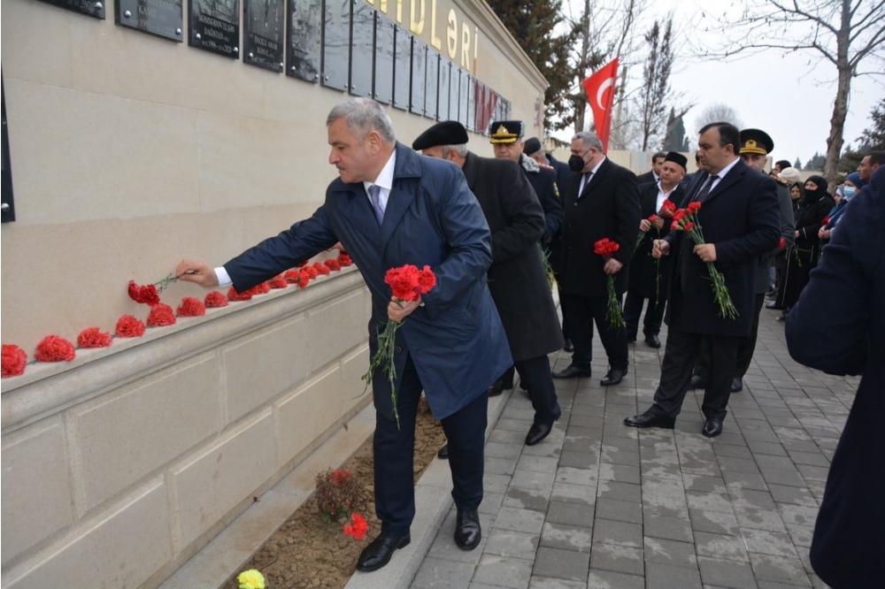 Tədbir iştirakçıları Tərtər şəhərində şəhidlərin xatirəsinə ucaldılmış Abidə Kompleksini ziyarət edərək faciə qurbanlarının eləcə də, torpaqlarımızın azadlığı uğrunda canından keçən şəhidlərimizin xatirəsini ehtiramla anıb, abidə önünə gül dəstələri düzüblər.