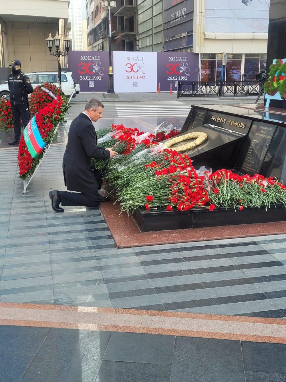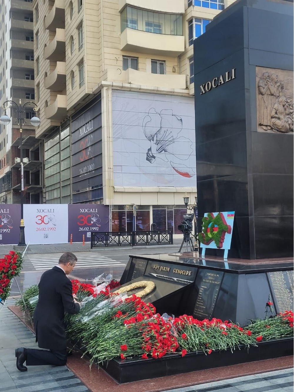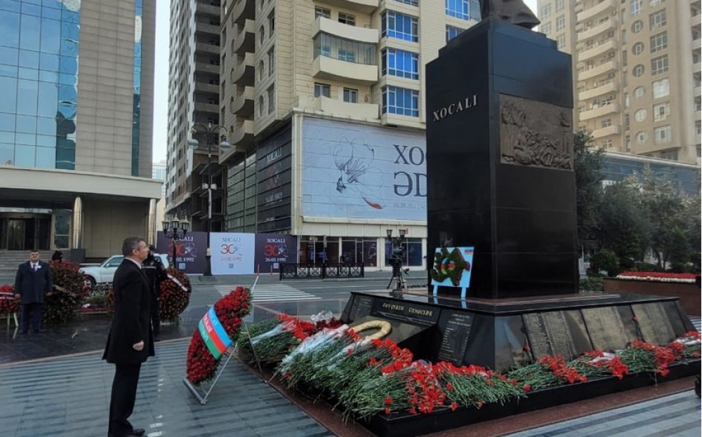 “30 il əvvəl baş vermiş Xocalı faciəsi qurbanlarının xatirəsinə ucaldılmış abidənin önünə gül dəstələrinin qoyulmasında iştirak etdim”.