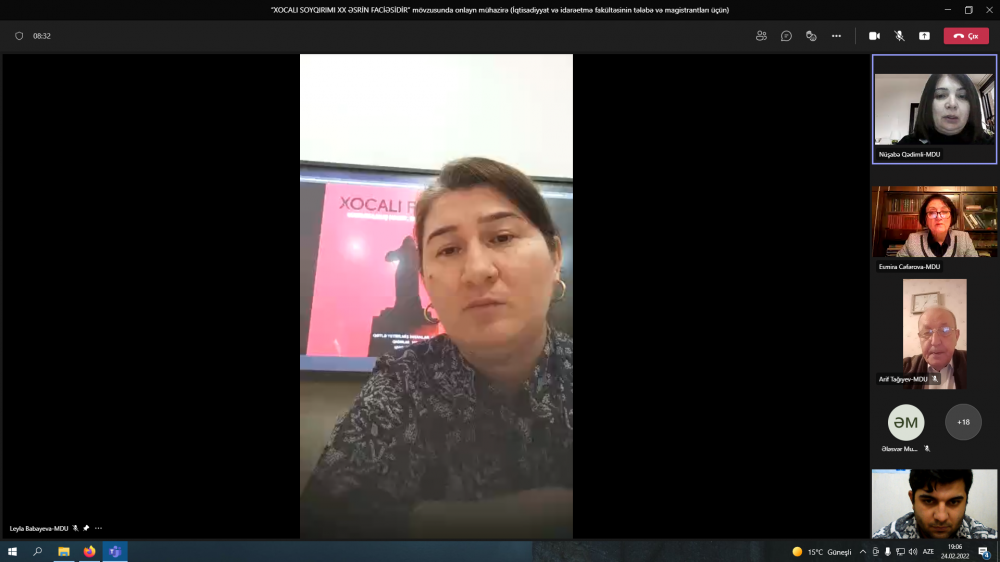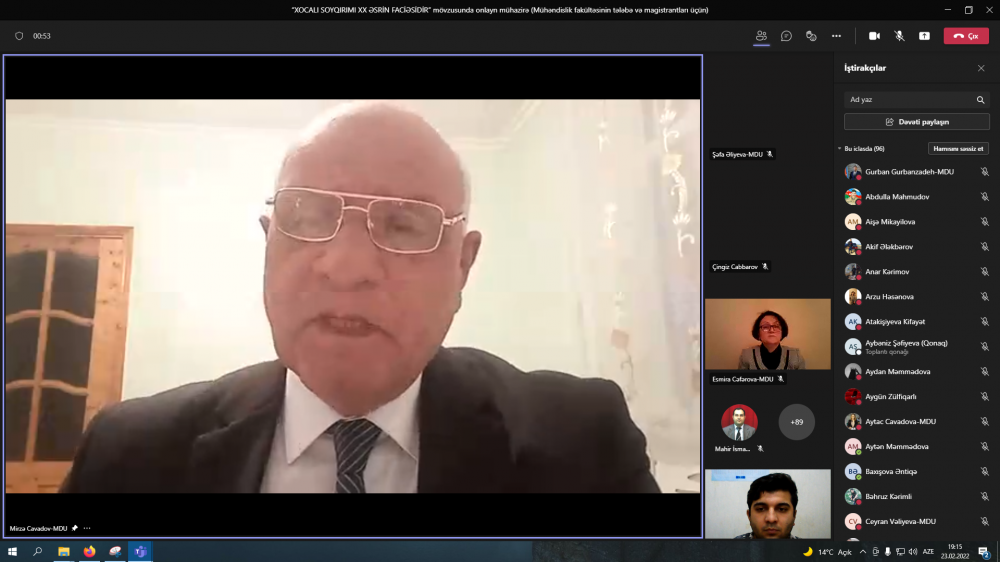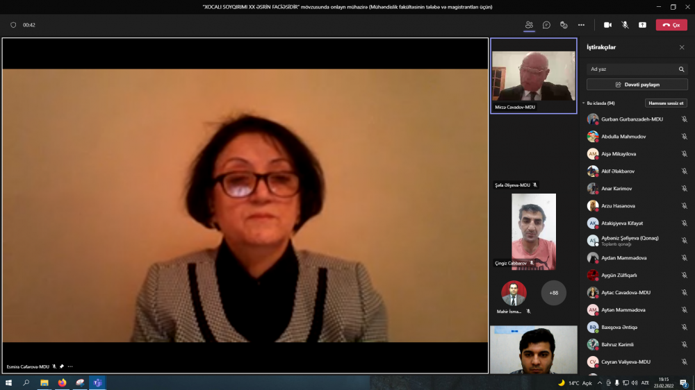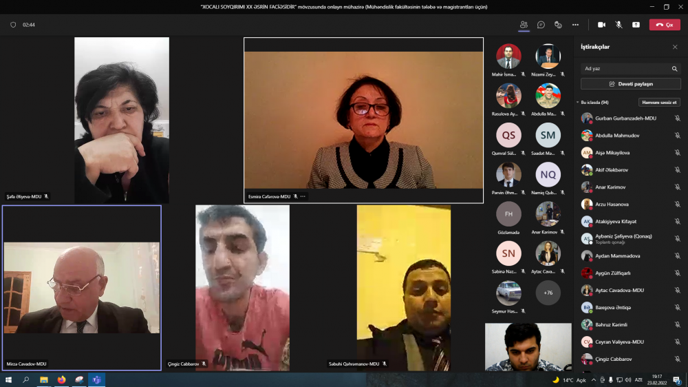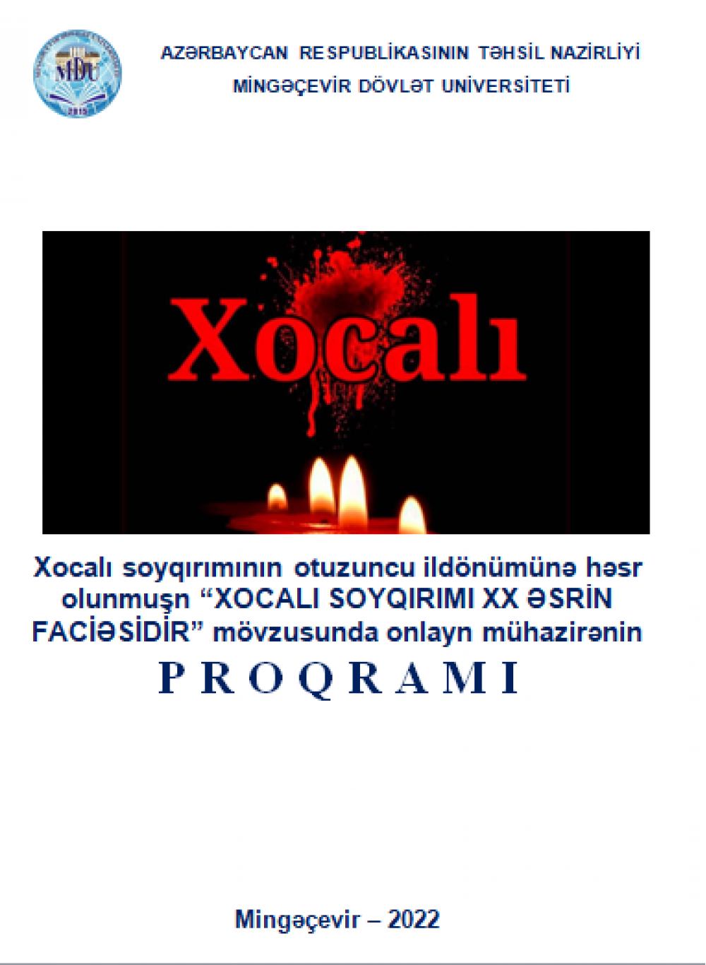 2022-ci ilin 23-25 fevral tarixlərində Mingəçevir Dövlət Universitetində (MDU) Xocalı faciəsinin otuzuncu ildönümünə həsr olunmuş “Xocalı soyqırımı XX əsrin faciəsidir” mövzusunda silsilə mühazirələr təşkil olunub.