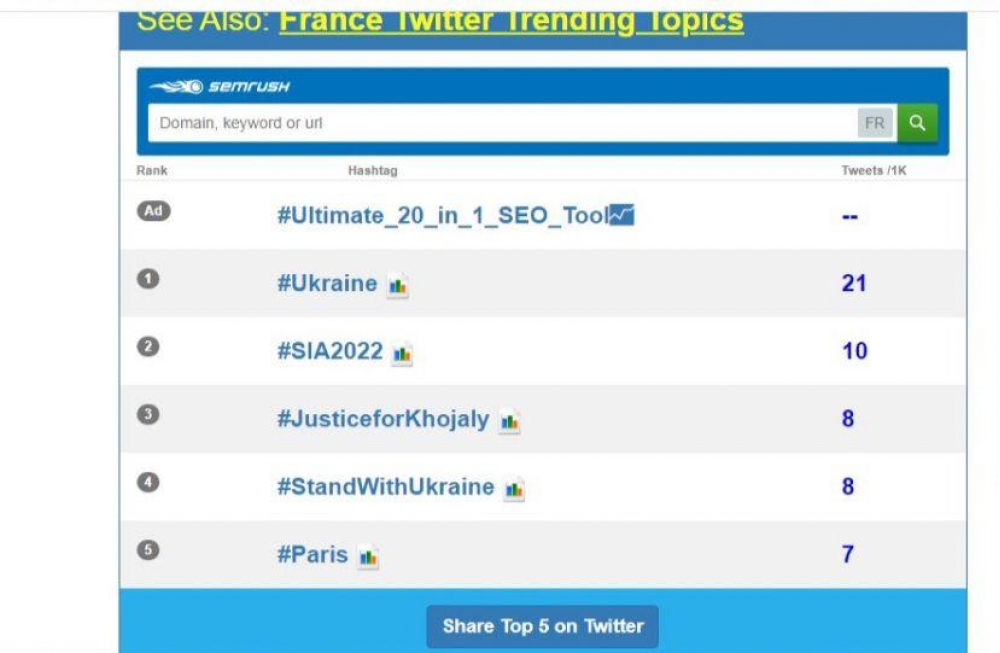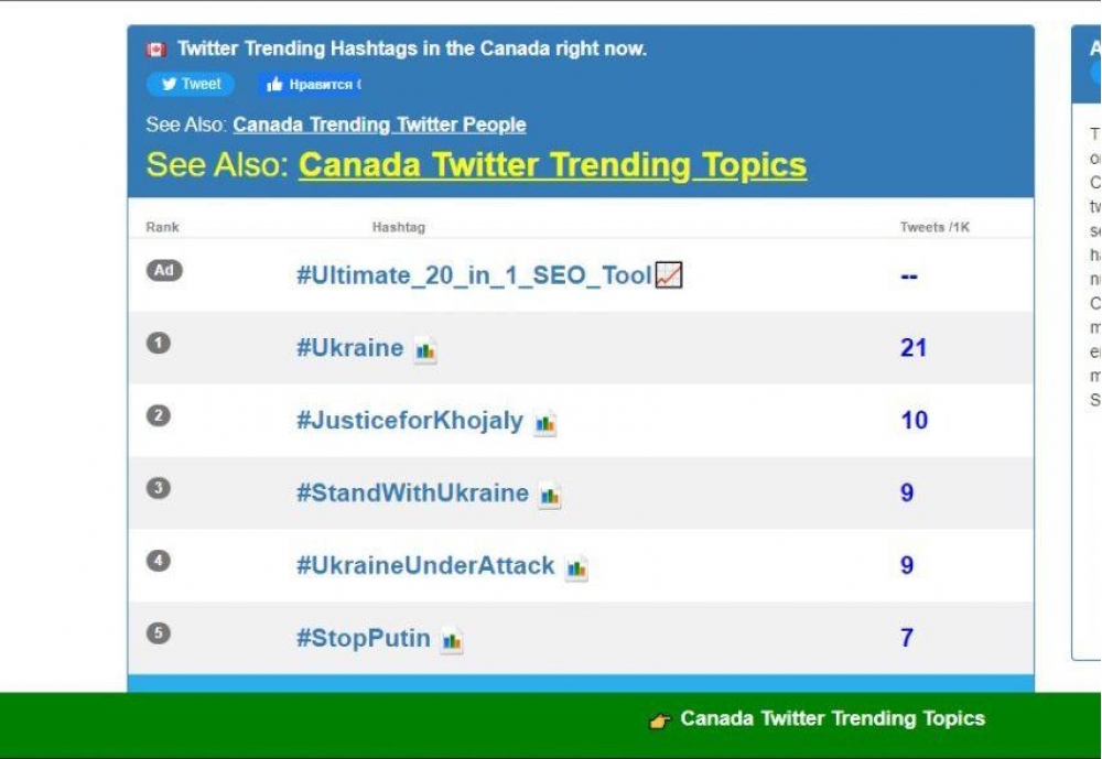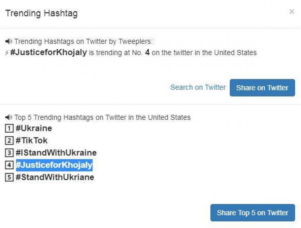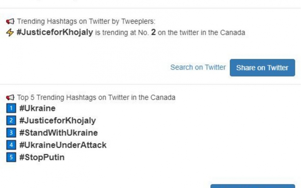 Amerika trendində #JusticeforKhojaly 4-cü yer, Fransa trendində 3-cü yer, Kanada trendində isə 2-ci yerdə olub.