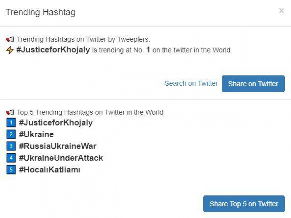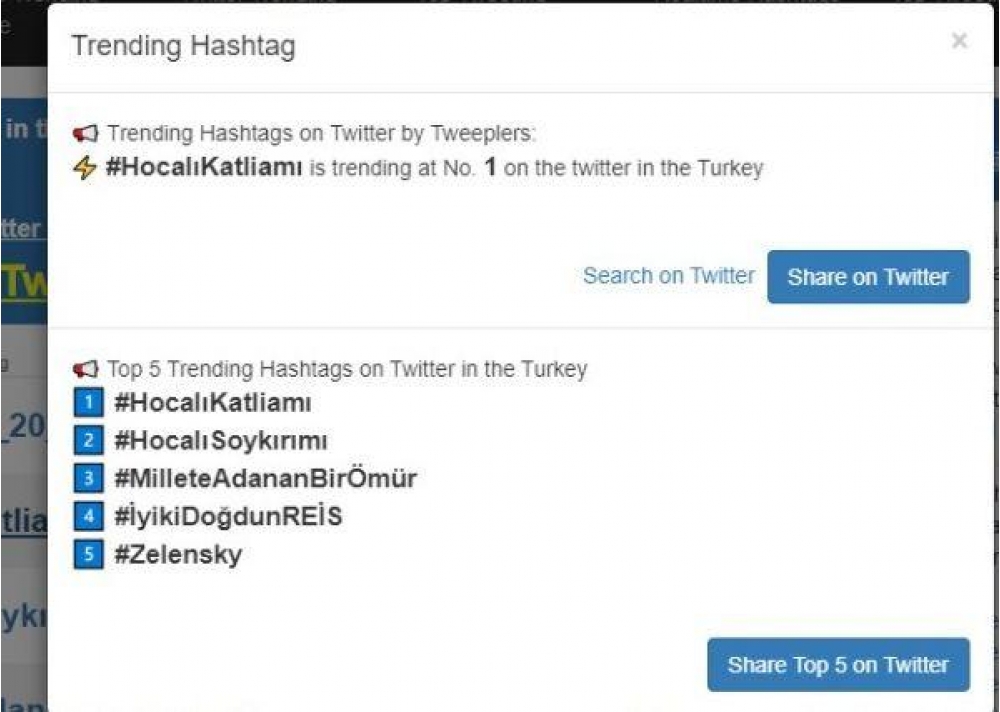 Türkiyə trendində isə #HocalıKatliamı 1-ci yer, #HocalıSoykırımı 2-ci yerdə qərarlaşıb.