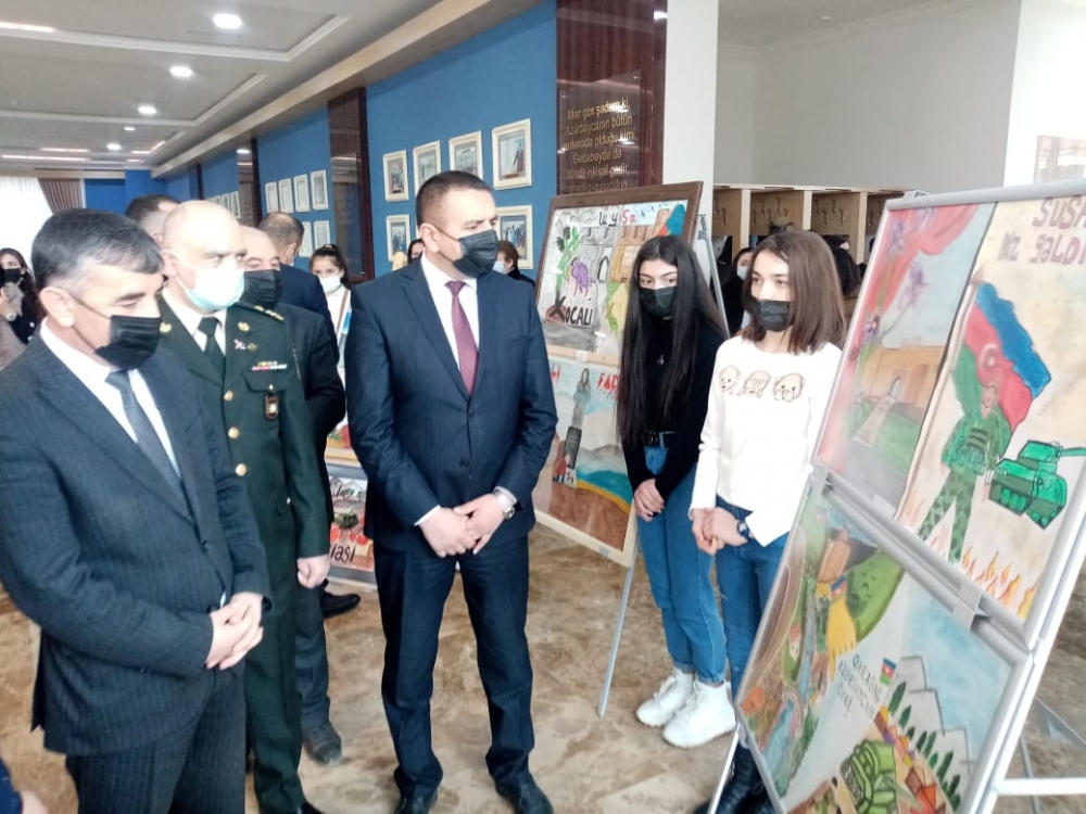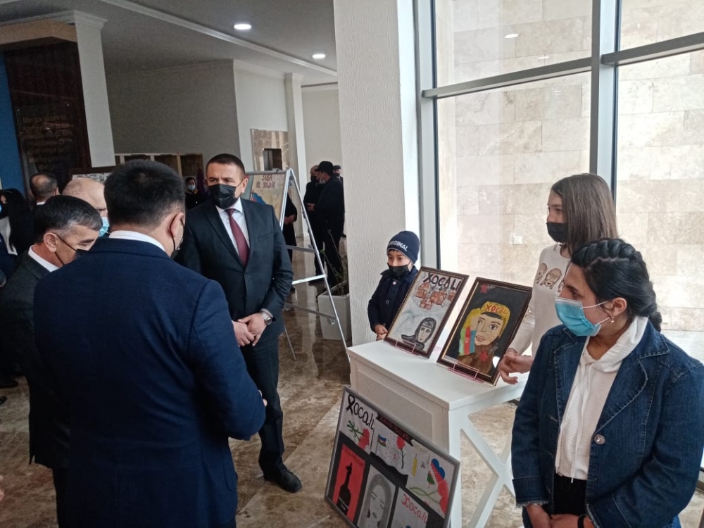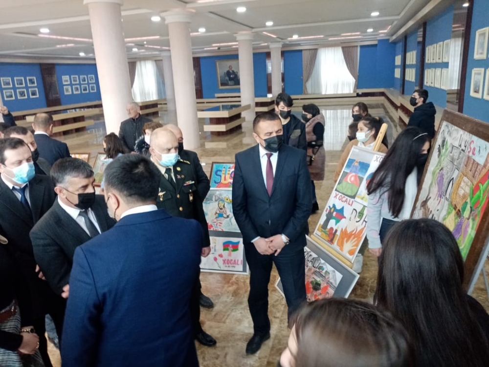 Daha sonra şagirdlərin Xocalı soyqırımına həsr etdikləri əl işləri və rəsm əsərlərindən ibarət sərgi nümayiş etdirilib.