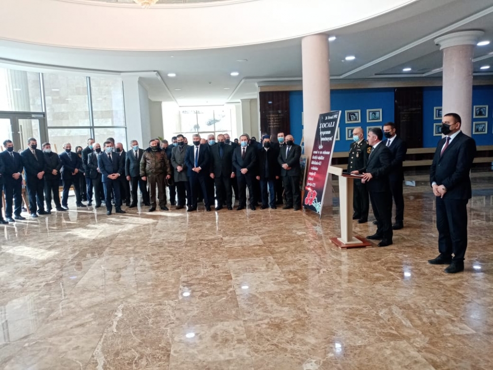 Çıxış edən Gədəbəy RİH başçısının vəzifəsini icra edən Natiq Nağıyev bildirib ki, 30 il əvvəl - 1992-ci il fevralın 25-dən 26-na keçən gecə erməni silahlı qüvvələri mühasirəyə aldıqları Xocalı şəhərində 613 nəfər, o cümlədən 106 qadını, 63 uşağı, 70 qocanı öldürüb, 487 dinc sakini ağır yaralayıb, 1275 nəfəri girov götürüblər.