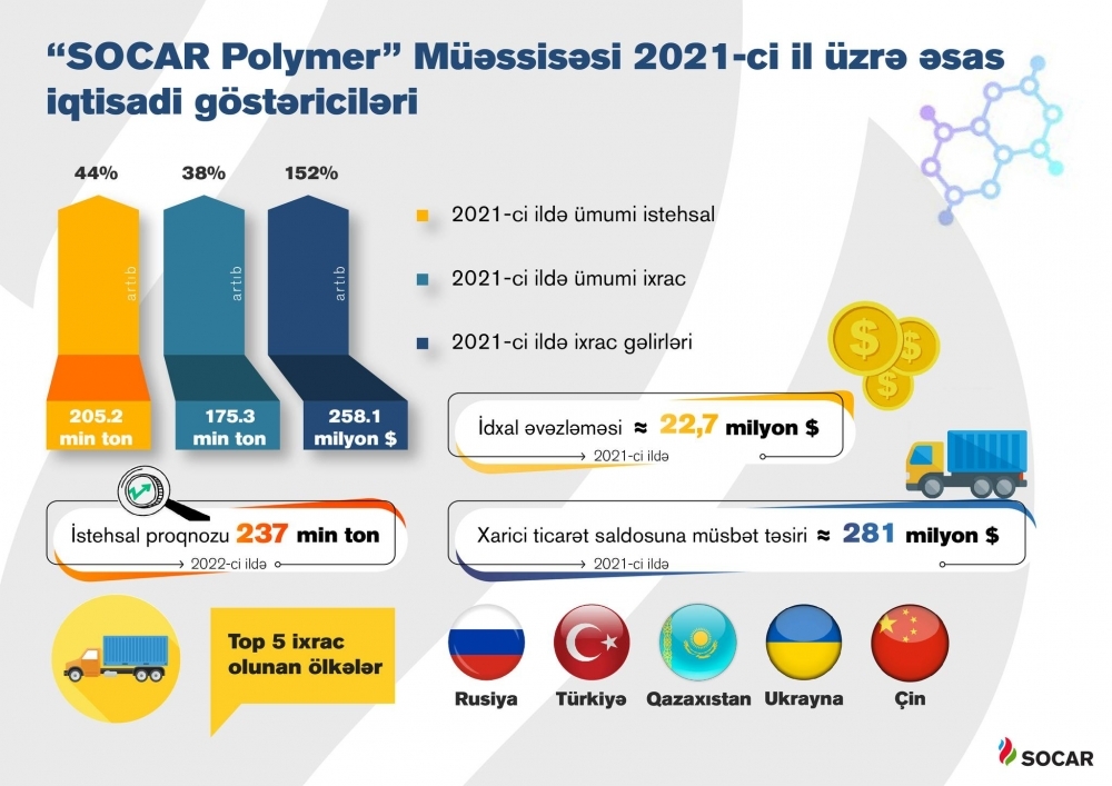O bildirib ki, 2021-ci ildə ölkə üzrə qeyri-neft ixracının 9 faizdən çoxu “SOCAR Polymer”in payına düşüb.