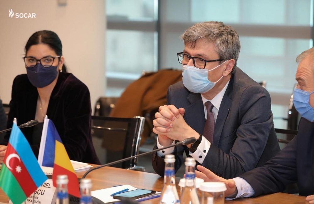 "SOCAR-ın Müşahidə Şurasının sədri, Azərbaycan Respublikasının İqtisadiyyat naziri Mikayıl Cabbarovun iştirakı ilə Rumıniyanın Energetika naziri Virgil-Daniel Popesku və strateji layihələr üzrə xüsusi nümayəndə Ana Birçal ilə görüşdə enerji sahəsində əməkdaşlığın gələcək perspektivləri müzakirə edilib", - Rövşən Nəcəf qeyd edib.