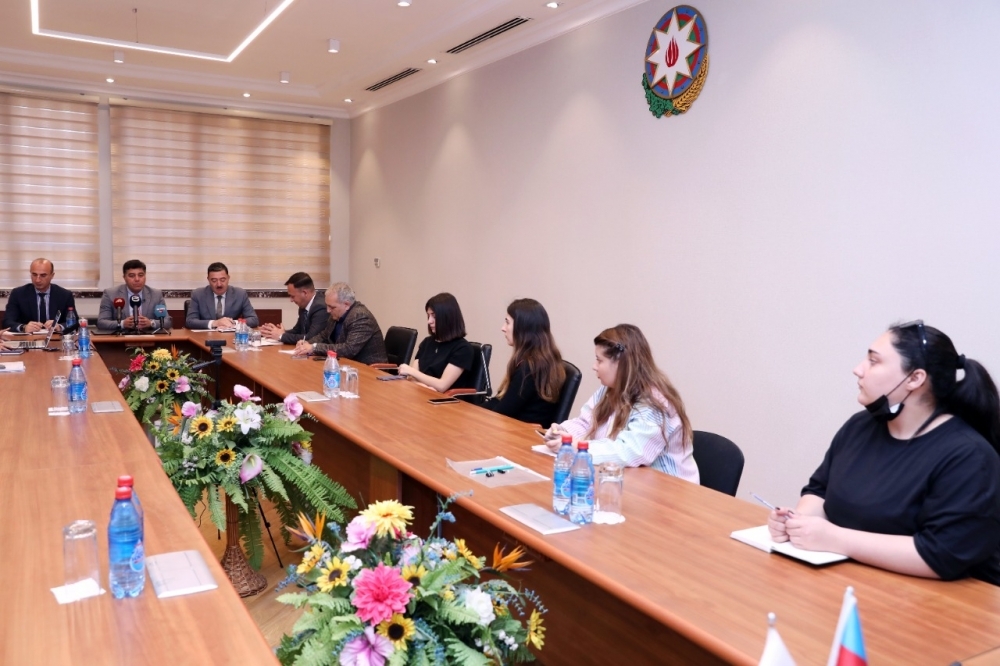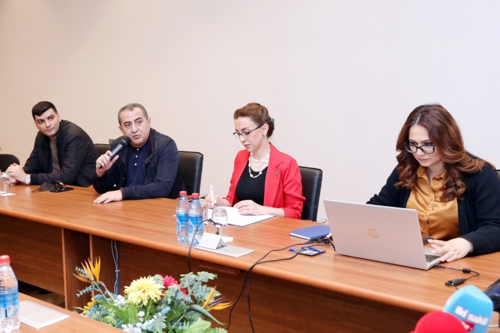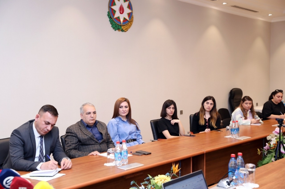 İB-nin İctimaiyyətlə əlaqələr şöbəsinin rəisi Eldəniz Vəliyevin moderatorluğu və qurumun digər şöbə rəislərinin iştirakı ilə keçirilən tədbirdə jurnalistlərin sualları cavablandırılıb.