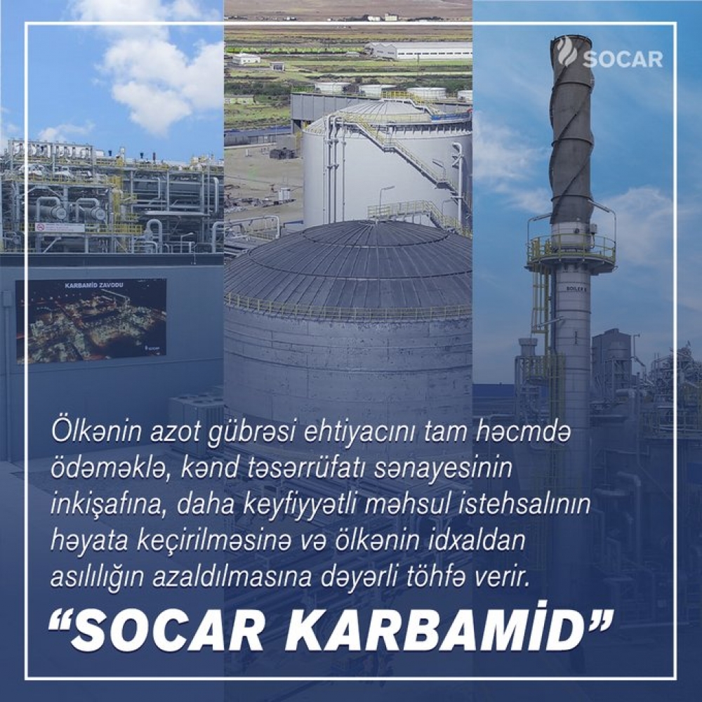 Qeyd edək ki, karbamid (azot gübrəsi) Sumqayıt Kimya Sənaye Parkının ərazisindəki “SOCAR Karbamid” zavodunda istehsal edilir. Zavod 2019-cu il yanvarın 16-da istifadəyə verilib, il ərzində 435 milyon kubmetr təbii qazdan xammal kimi istifadə etməklə 650-660 min ton karbamid istehsal etmək gücündədir. İstehsal həcminin 70 %-i ixrac üçün nəzərdə tutulub.