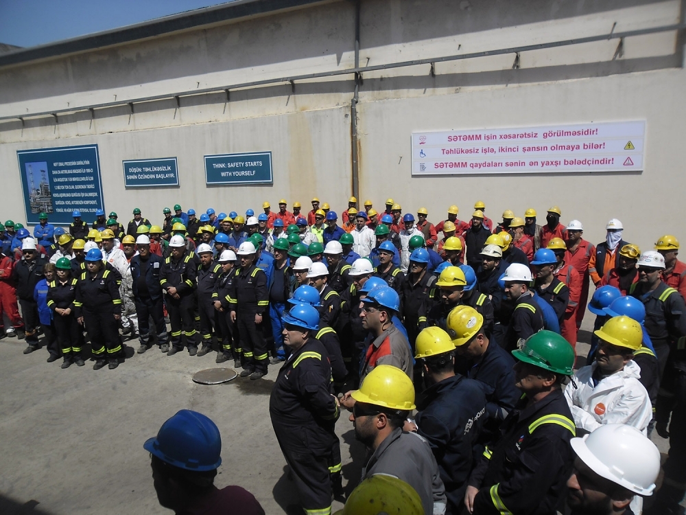 Zavodun hazırda əsaslı təmirə dayanmış texnoloji qurğularının ərazilərində keçirilən tədbirlərdə çıxış edənlər - Heydər Əliyev adına NEZ-in direktoru Bəxtiyar Məmmədov, baş mühəndis Rasim İbrahimov, “SOCAR Downstream Management” MMC-nin (SDM) baş direktoru Mustafa Mesut İlter, baş direktorun Layihələr və sərmayələr üzrə müavini Emil Alxaslı, İstahsalat üzrə baş direktor müavini Çengiz Çelik, Texnoloji mühəndislik üzrə direktor Filiz Karadağ, İstehsal mükəmməlliyi üzrə baş direktor müavini Bekir Yumuk Mehmet, Təmir fəaliyyətləri üzrə menecer Mehmet Merdin 28 Aprel - Ümumdünya Əməyin Mühafizəsi Günü münasibətilə toplantı iştirakçılarını təbrik ediblər. Bildiriblər ki, bu gün işçilərin sağlam və təhlükəsiz əmək şəraitinin təşkili bütün dünyada aktual məsələlərdən biridir. Bu mənada sağlam və təhlükəsiz iş şəraitinin yaradılması, istehsalatda işçilərin həyatının və sağlamlığının qorunması Heydər Əliyev adına NEZ-in və “SOCAR Downstream Management” MMC-nin məsul rəhbər işçilərinin qarşısında duran başlıca vəzifələrdəndir və bu məsələ daim onlardan xüsusi diqqət tələb edir. Əməyin mühafizəsinə dair bir sıra tədbirlərin təşkil olunması onu göstərir ki, zavod və SDM rəhbərliyi insan amilini, onun sağlam və təhlükəsiz əmək şəraitində fəaliyyət göstərməsini istehsalat amillərindən üstün tutur.