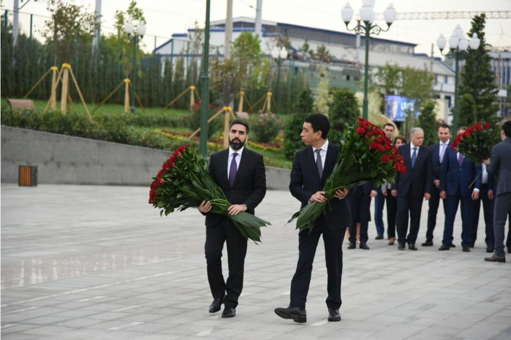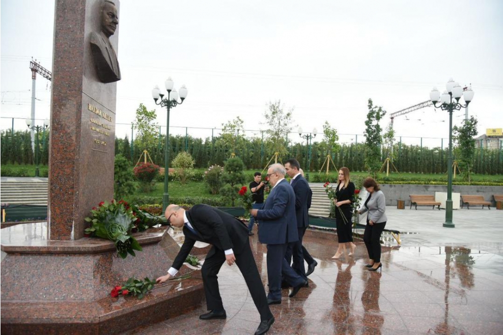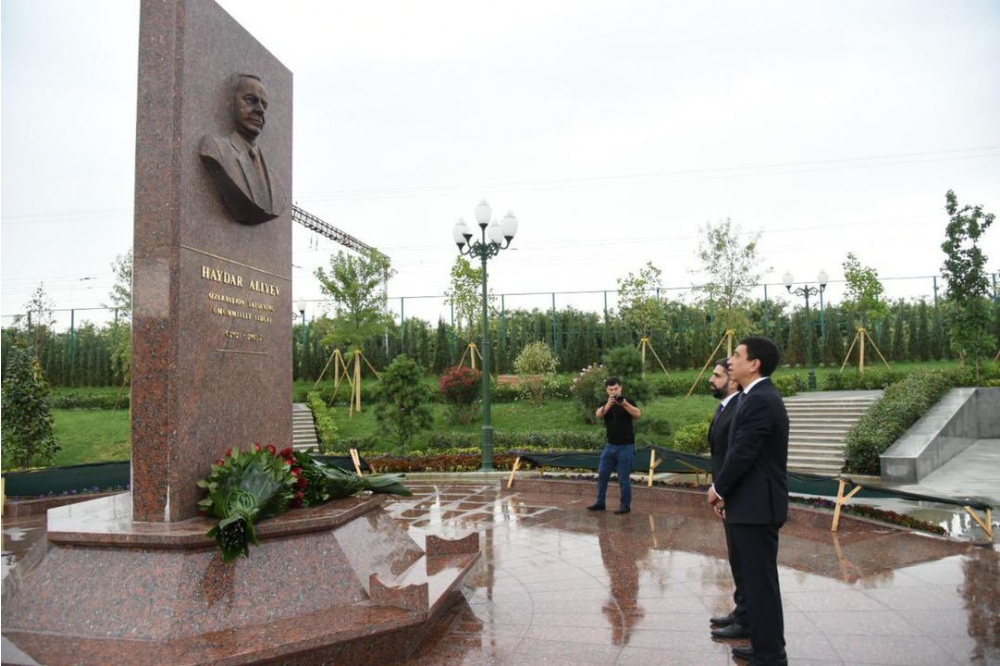 “Özbəkistana səfər çərçivəsində ümummilli lider Heydər Əliyevin abidəsini ziyarət edərək ulu öndərin əziz xatirəsini yad etdik”.