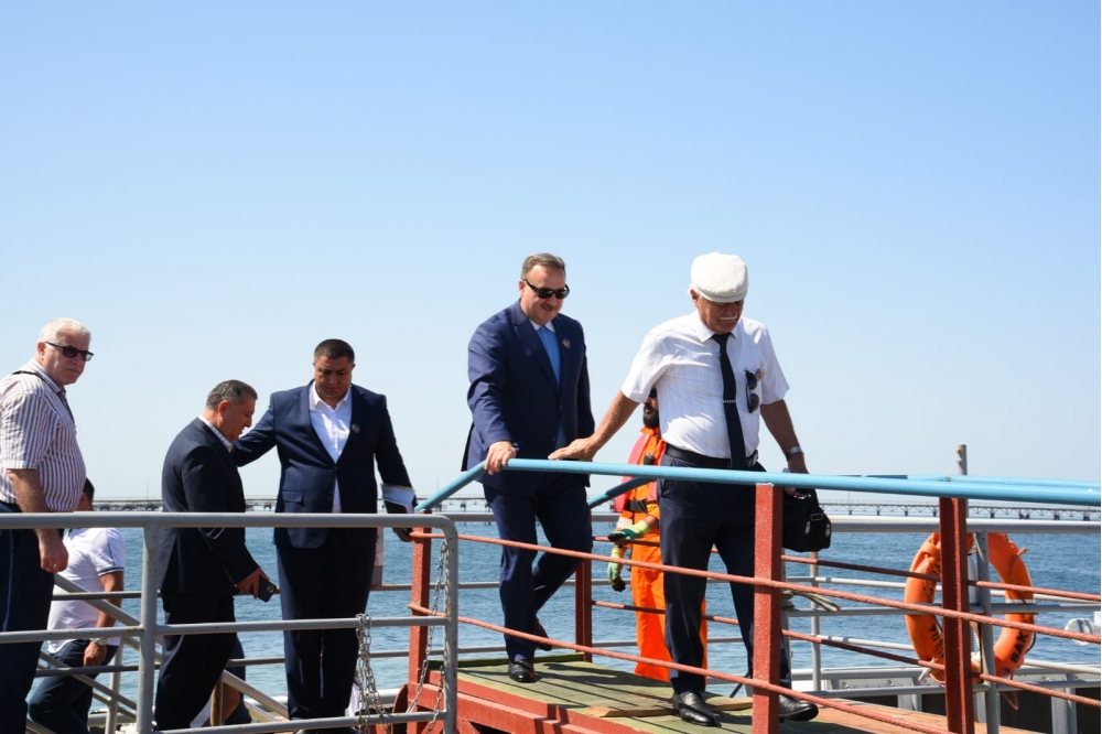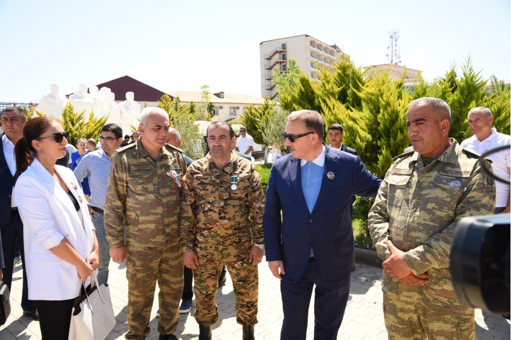 Daha sonra görkəmli neftçi-geoloq Ağaqurban Əliyevin abidəsi və Xəzəri fəth edərkən dənizdə həlak olmuş neftçilərin xatirəsinə ucaldılmış abidə kompleksi ziyarət edilib.