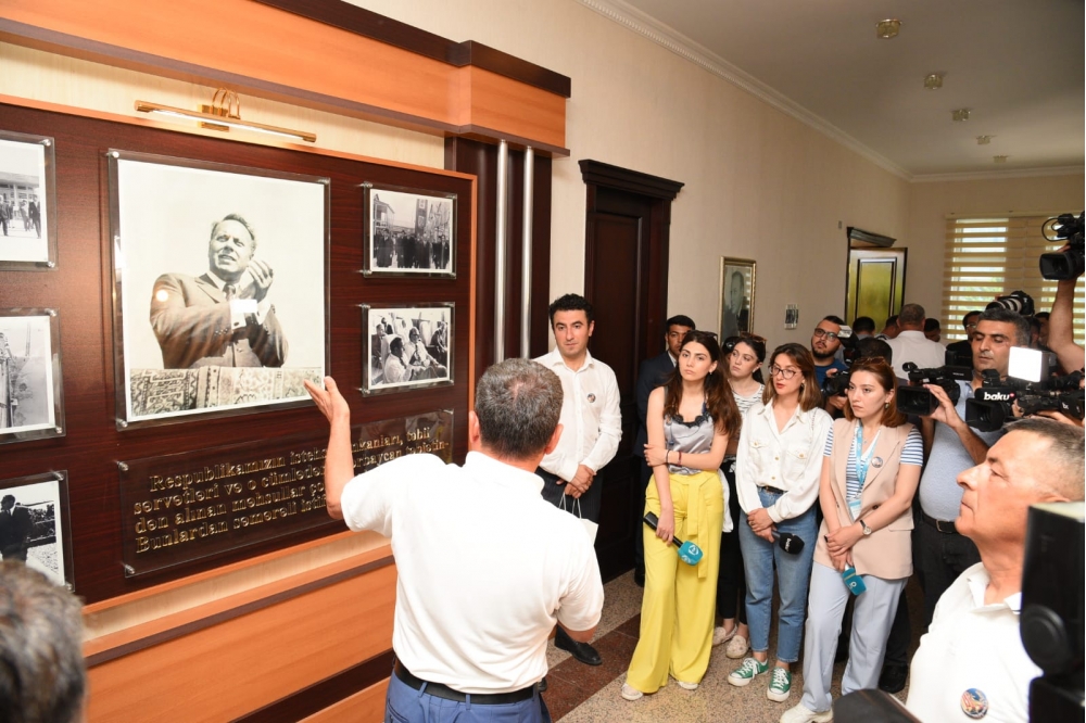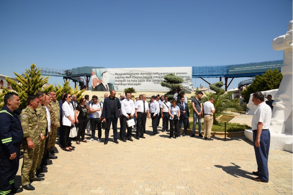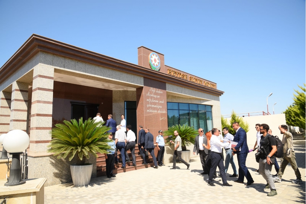 İştirakçılar əvvəlcə xalqımızın ümummilli lideri Heydər Əliyevin “Neft Daşları”nda ucaldılmış abidəsini ziyarət edib, Ulu Öndərin adını daşıyan muzey ilə tanış olublar. Nümayəndə heyətinə Ümummilli Liderin neft sənayesinin inkişafına göstərdiyi diqqət və qayğısını əks etdirən tarixi fotolar haqqında məlumat verilib.