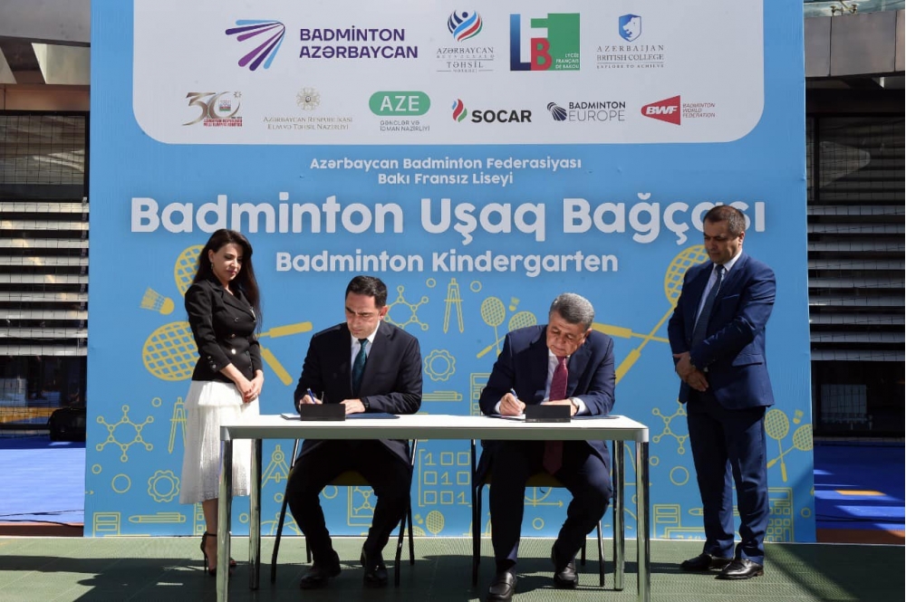 “İki sahil” xəbər verir ki, paylaşımda qeyd edilir: "Bu gün Azərbaycan Badminton Federasiyası və SOCAR ABTM İB-nin birgə əməkdaşlığı ilə Bakı Fransız Liseyində bağça uşaqlarında erkən yaşlarda badmintona maraq yaratmaq, bu idman növünün əlçatan olmasını təbliğ etmək və istedadlı uşaqları vaxtında müəyyən etmək məqsədilə “Badminton Uşaq Bağçası” layihəsinin təqdimat mərasimi keçirilib."