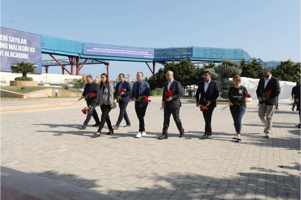 Ölkəmizin ərazi bütövlüyü uğrunda qəhrəmancasına şəhid olmuş neftçilərin abidə kompleksini ziyarət edən nümayəndə heyəti şəhidlərimizin əziz xatirəsini minnətdarlıqla yad edib, daha sonra “Neft Daşları”nın 30 illiyi münasibətilə ucaldılmış kompozisiya ilə tanış olub.