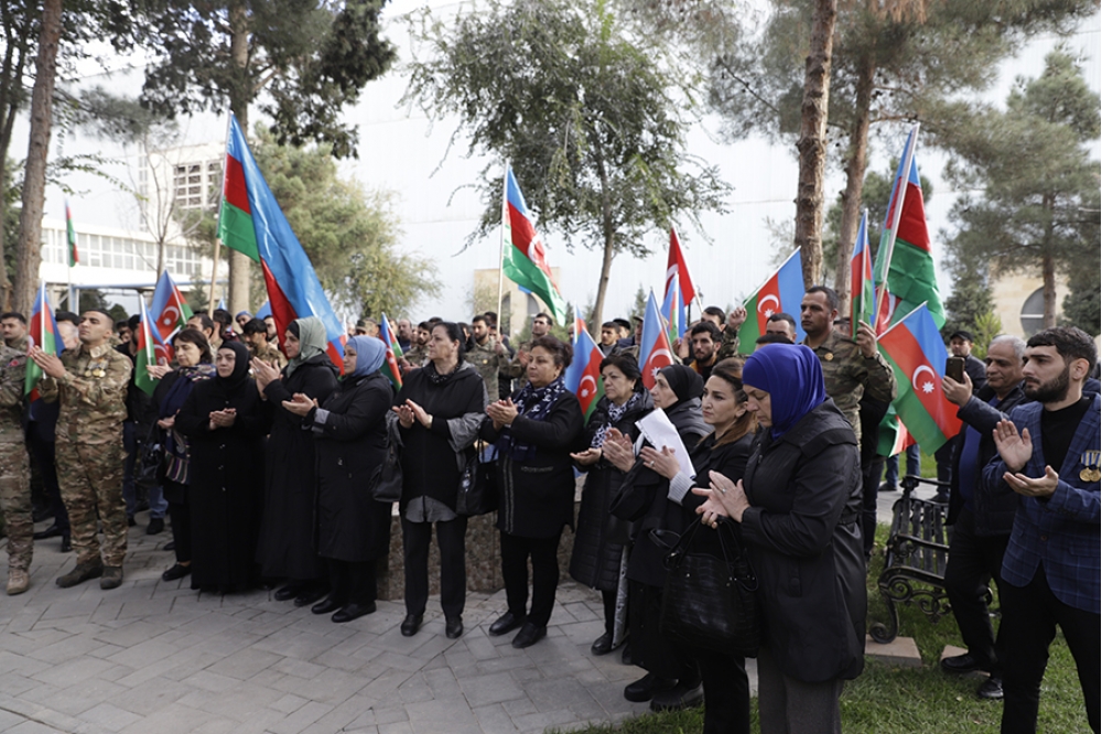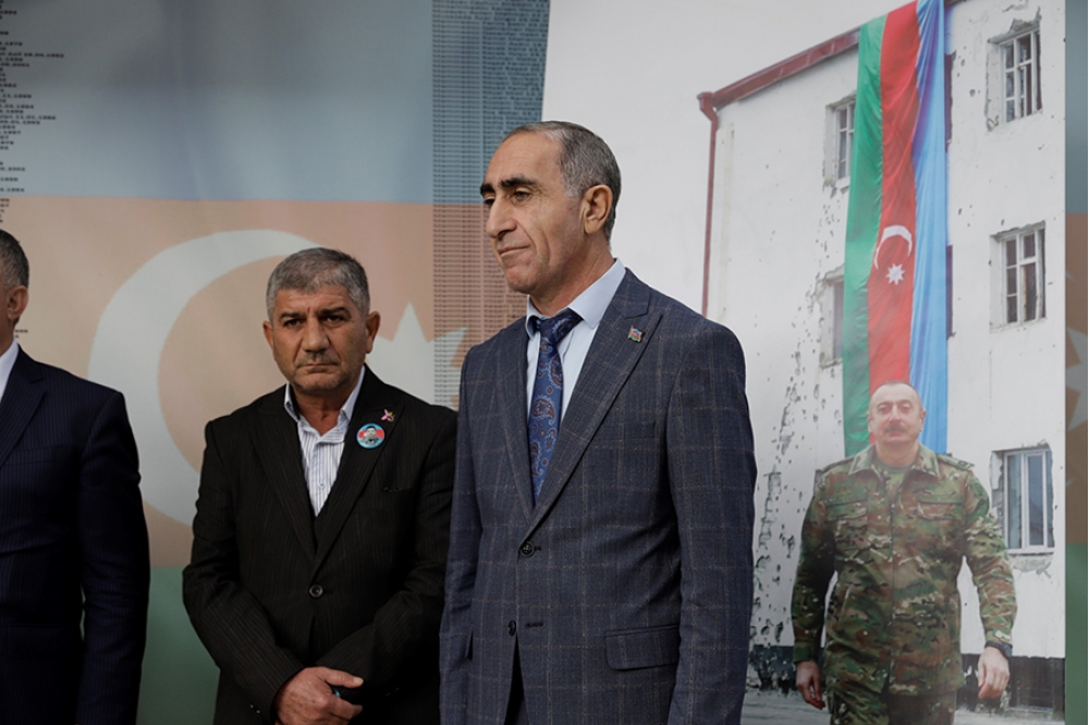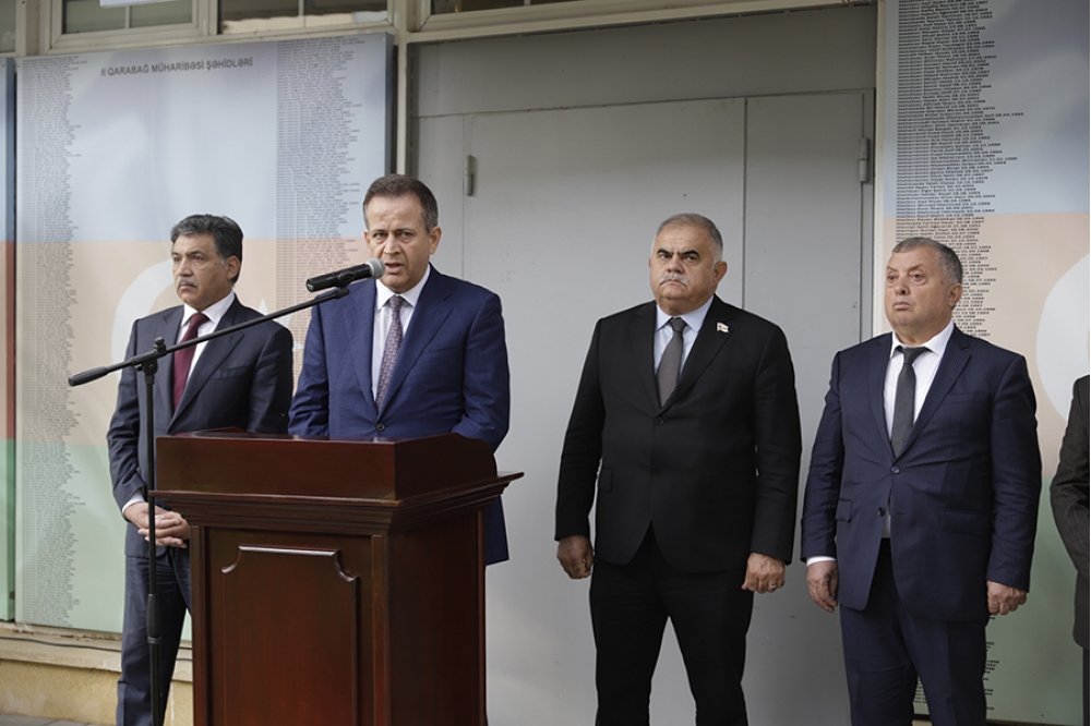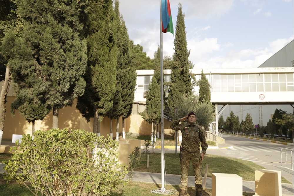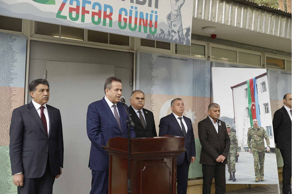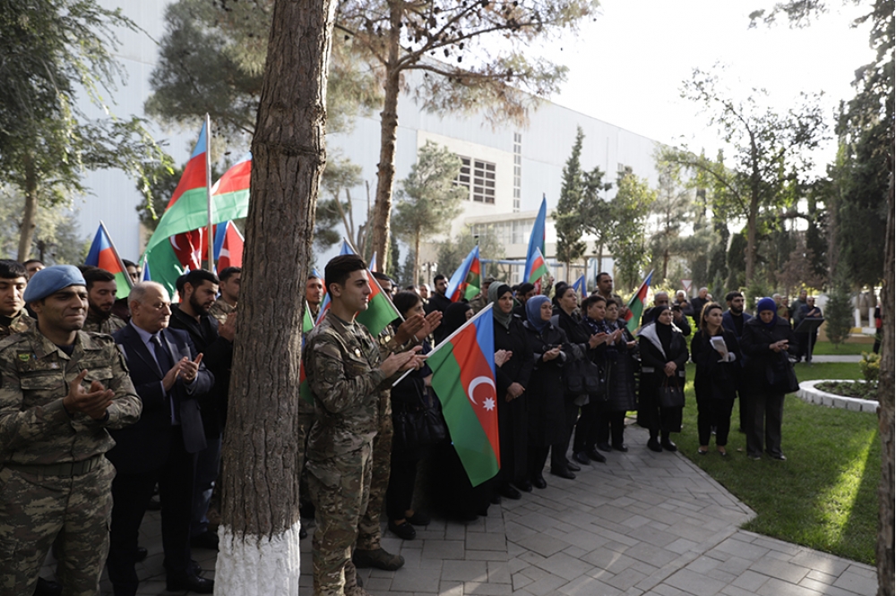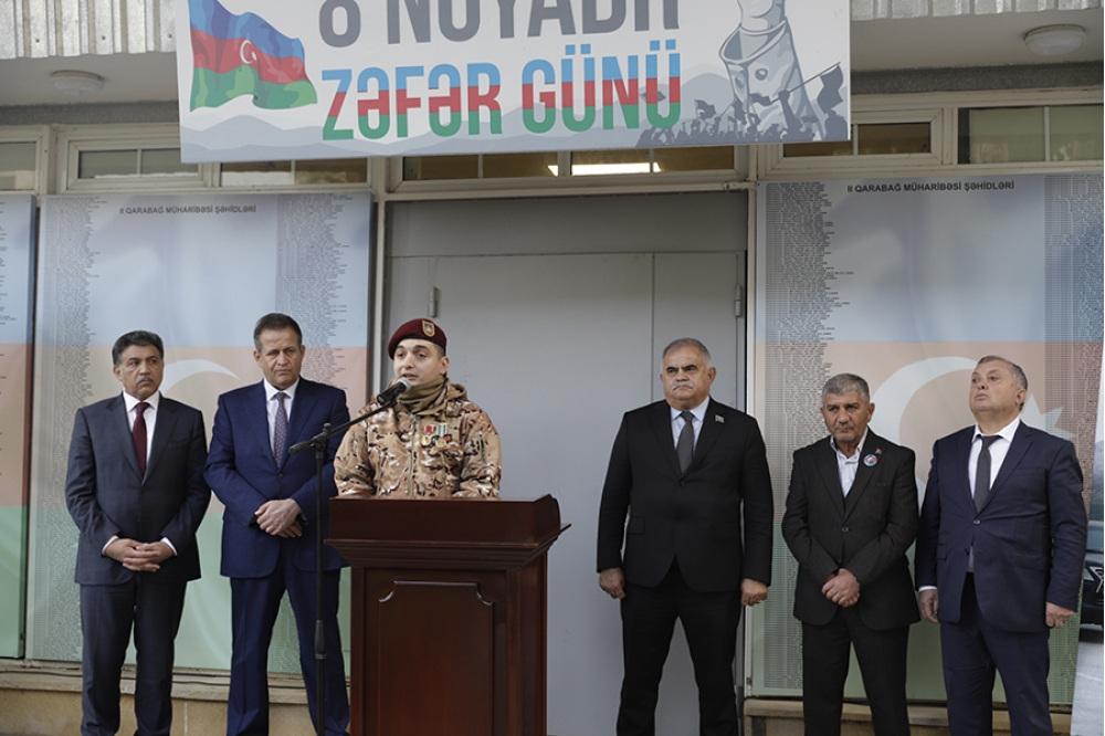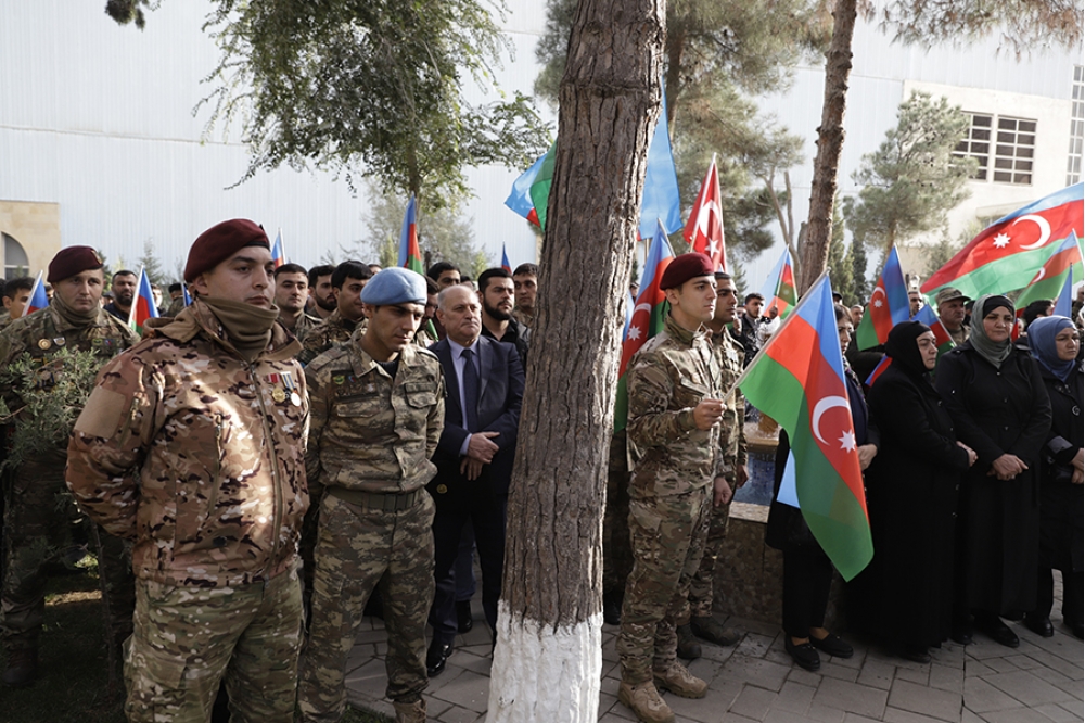 Daha sonra Tarixi Zəfərimizin memarı olan şəhidlərin əziz xatirəsi bir dəqiqəlik sükutla yad edilib, Azərbaycan Dövlət himni səsləndirilib.