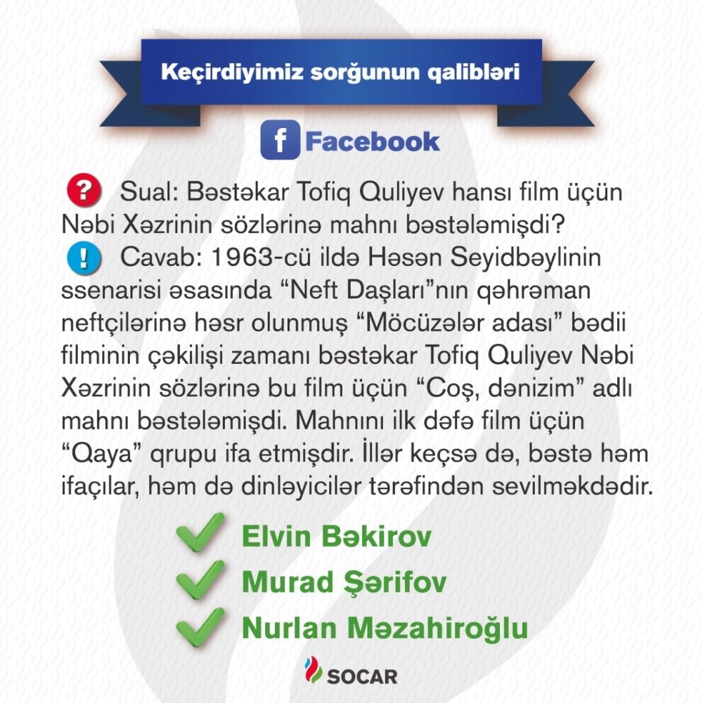 "İki sahil" SOCAR-ın təşkil etdiyi sorğunun suallarını və qaliblərini təqdim edir: