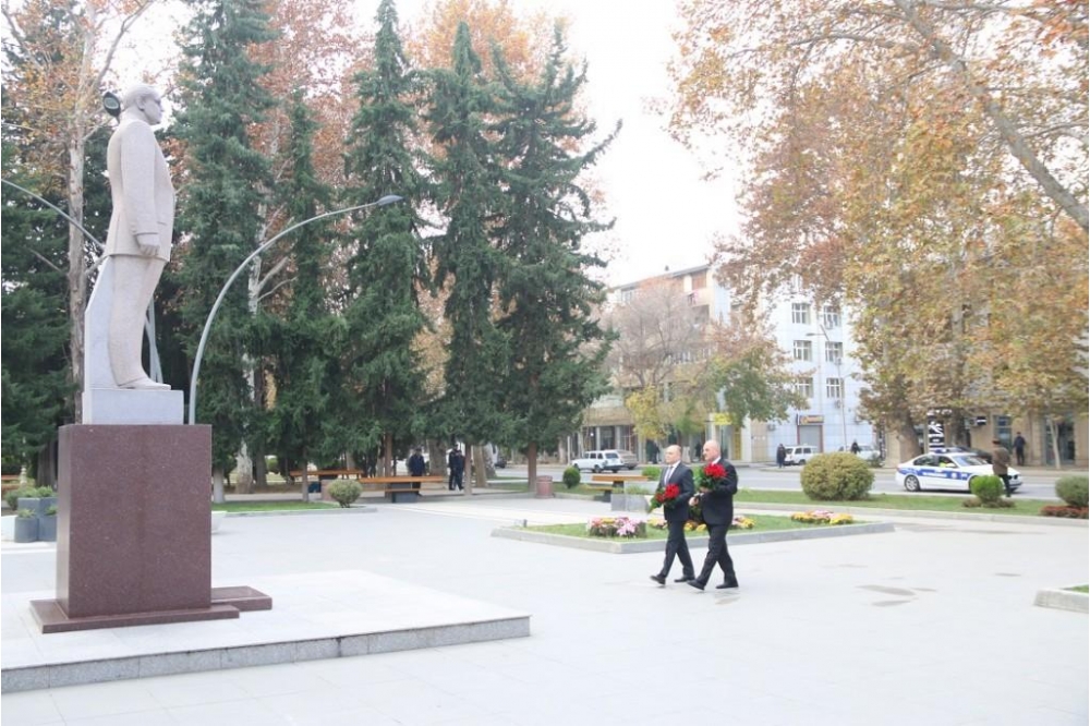 Anar Kərimov və Mingəçevir Şəhər İcra Hakimiyyətinin başçısı İlham İsmayılov əvvəlcə şəhərdə ümummilli lider Heydər Əliyevin abidəsini ziyarət edib, önünə gül dəstəsi qoyublar.