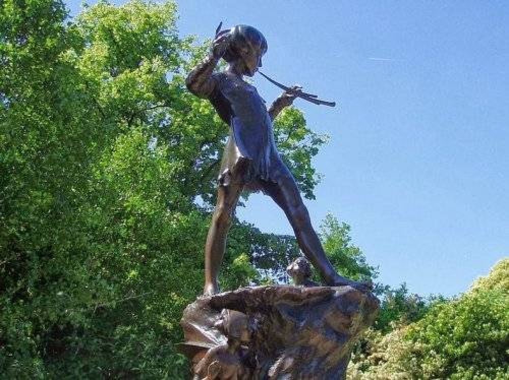 Piter Penin bürünc heykəli Londonda, Kensiqton bağlarında yerləşir. Bu yeri Piter Penin müəllifi Ceyms Barri seçmişdir. Barri Kensiqton bağlarının yaxınlığında yaşayırdı. O, 1902-ci ildə Piter Pen haqqında ilk hekayəsini dərc etmişdi. Piter Pen haqqında “Balaca ağ quş” adlı hekayələrin birində Piter öz otağından uçur və Lonq Uoter gölünün yanına enir. Məhz həmin yerdə indi Piter Penin heykəli yerləşir.