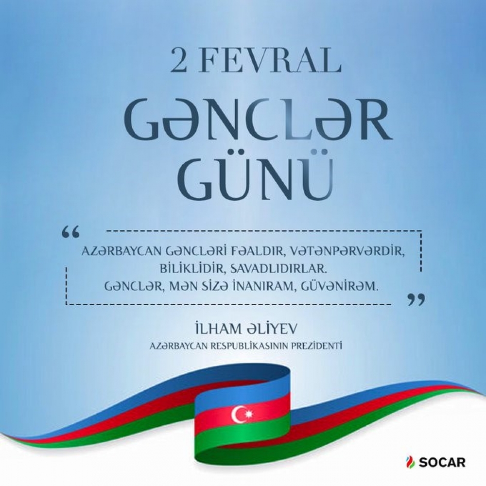 SOCAR-ın prezidenti Rövşən Nəcəf 2 Fevral- Gənclər Günü münasibətilə paulaşım edib.