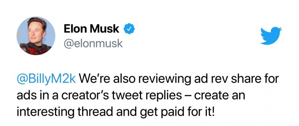 “İki sahil” xəbər verir ki, “Twitter”i məzmun istehsalçıları üçün yeni bir gəlir mənbəyinə çevirəcəyini açıqlayan İlon Mask, bu məqsədlə yeni funksiya üzərində çalışdıqlarını açıqlayıb.