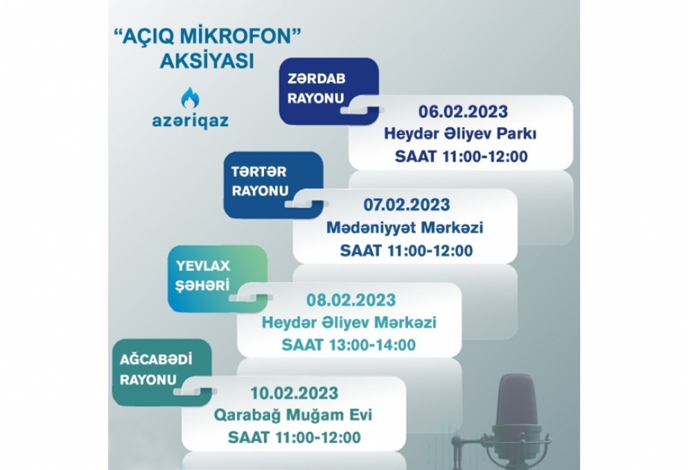 Gələn həftə daha bir şəhərdə və üç rayonda “Azəriqaz” İB-nin “Açıq mikrofon” aksiyaları keçiriləcək.