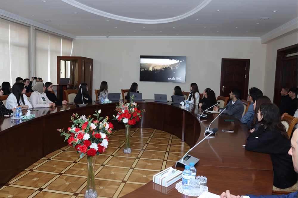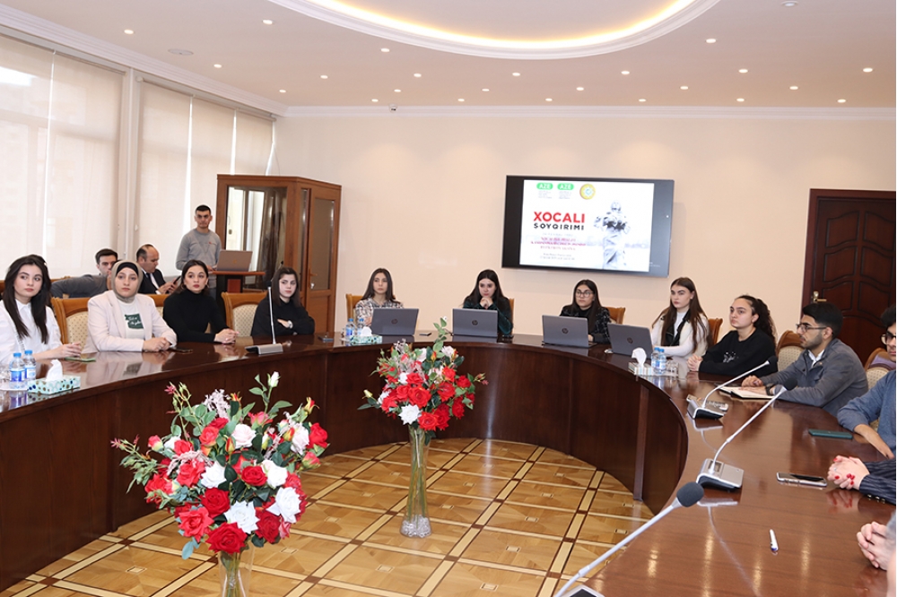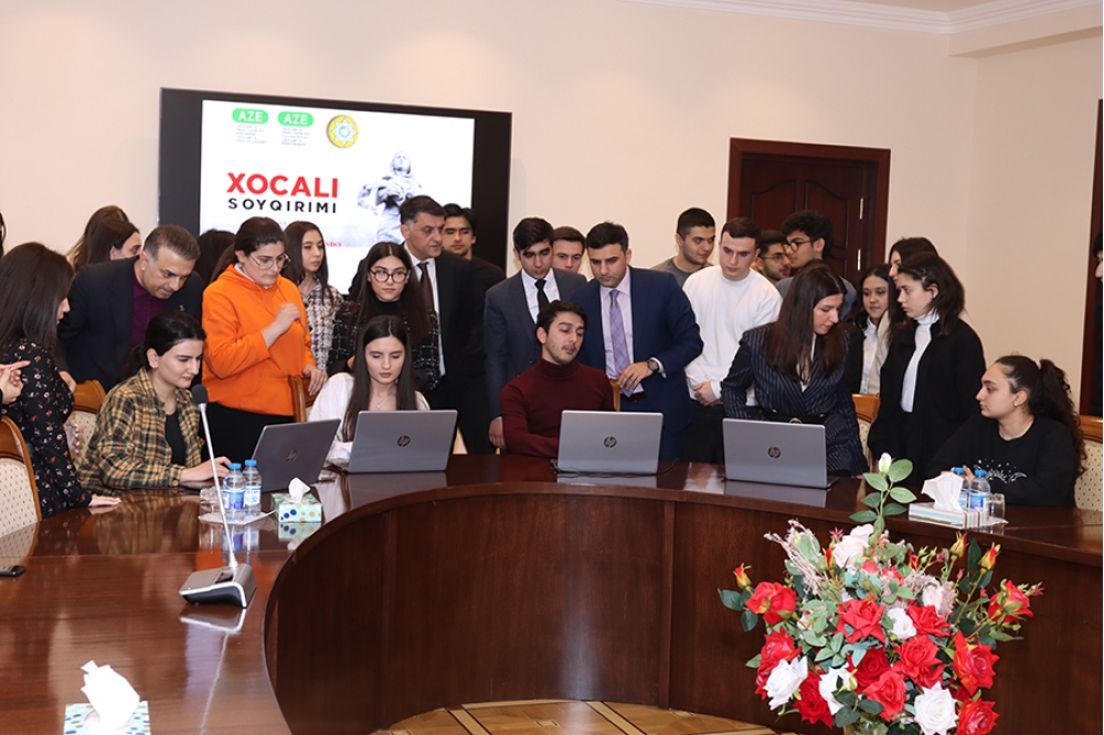 Çıxışlardan sonra Xocalı faciəsinə həsr edilmiş film nümayiş etdirilib. Yekunda isə 40 nəfər tələbə-gəncin iştirakı ilə elektron aksiya baş tutub. Belə ki, Xocalı həqiqətlərini əks etdirən məlumatlar dünyanın bir sıra nüfuzlu beynəlxalq təşkilatlarının elektron məktub ünvanlarına göndərilib.