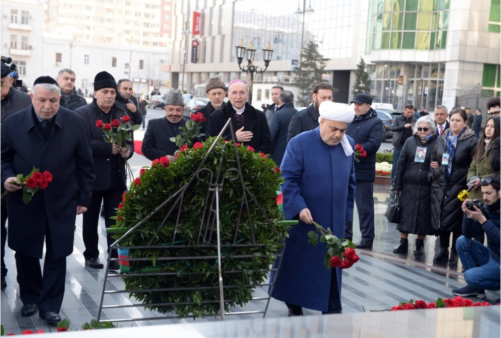 “İki sahil” xəbər verir ki, dini konfessiya rəhbərləri faciə qurbanlarının xatirəsini ehtiramla yad edib, Bakının Xətai rayonunda ucaldılmış abidənin önünə güllər düzüblər.