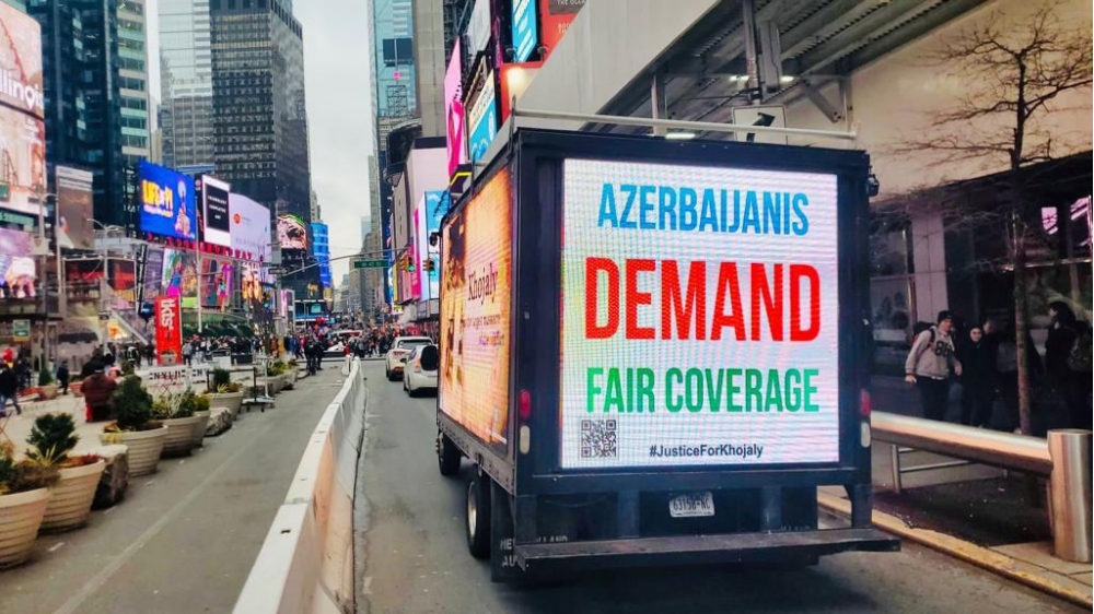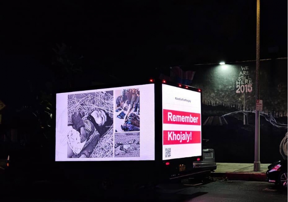 Aksiya zamanı Xocalı həqiqətlərini əks etdirən LED ekranlı avtomobillər şəhərlərin izdihamlı mərkəzi küçələrində hərəkət edib.