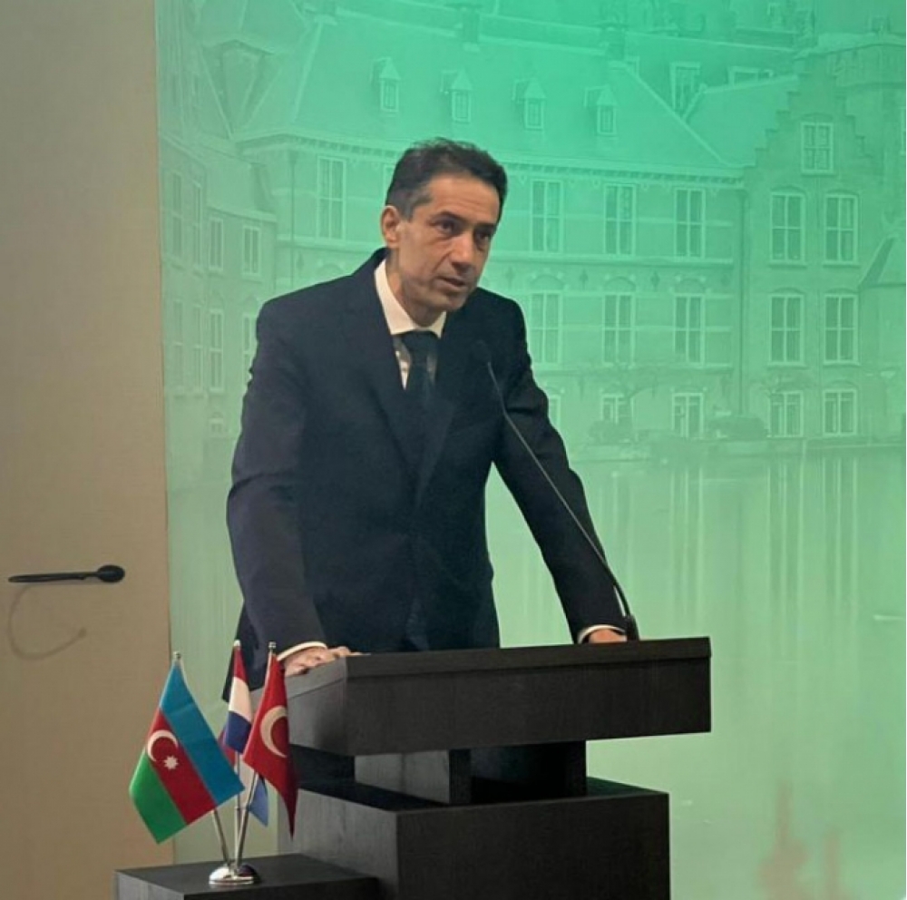 Anım mərasimi çıxışlarla davam edib. Hollandiya-Azərbaycan Türk Kültür dərnəyinin rəhbəri İlhan Aşkın Xocalı qətliamı haqqında danışıb.