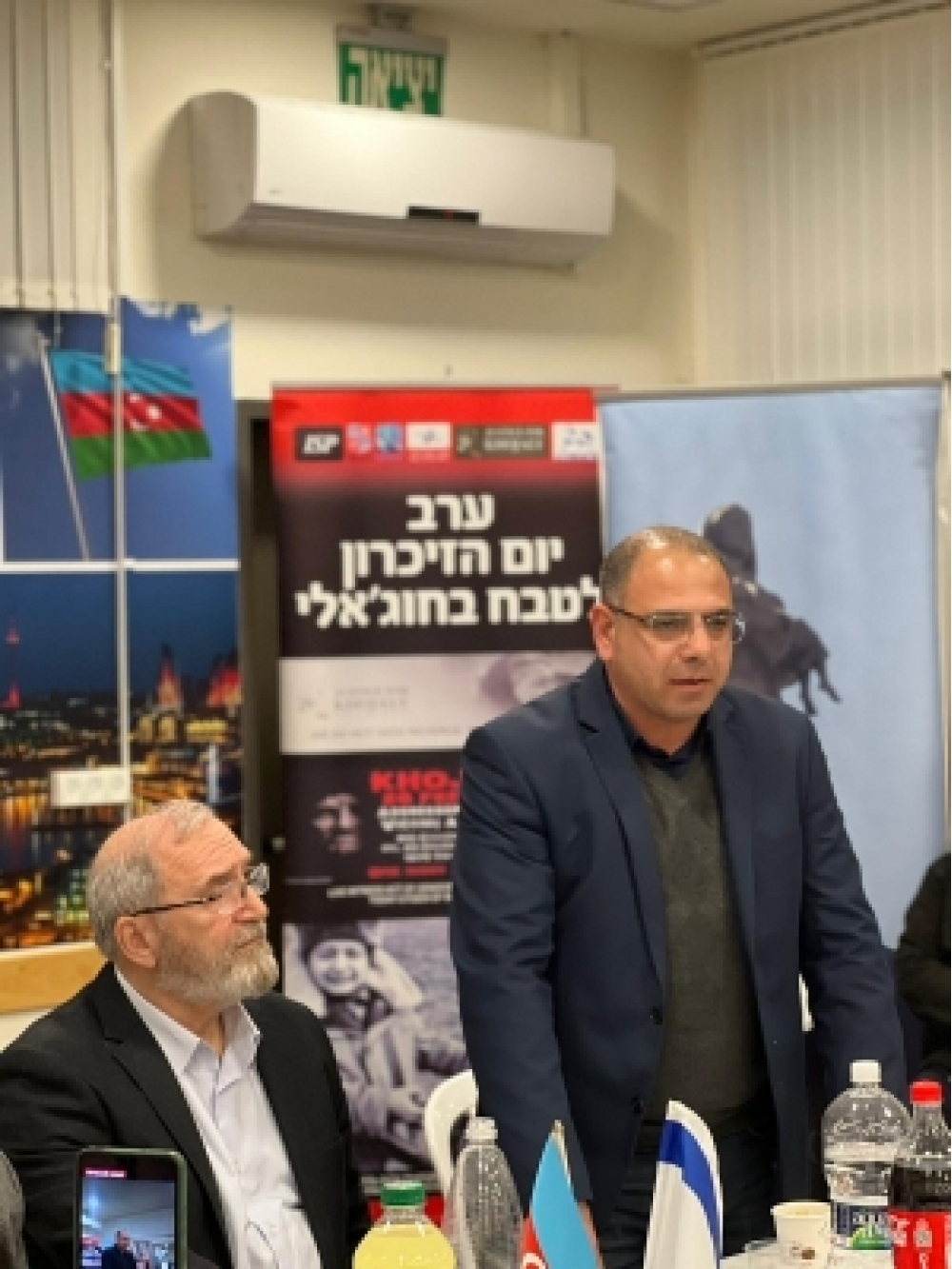 Tədbirdə daha sonra çıxış edən Ümumİsrail Dağ Yəhudiləri Birliyinin sədri Pavel Elizarov Xocalıda günahsız və əliyalın dinc sakinlərin məruz qaldığı erməni terrorunu və erməni vəhşiliyini şiddətlə pisləyərək‚ Ümumİsrail Dağ Yəhudilərinin hər zaman Azərbaycan xalqının yanında olduğunu bildirib. Daha sonra çıxış edən digər qonaqlar da‚ Nofa Galil şəhərinin cəmiyyət sədri Amir Xanox‚ İsrail Müdafiə Nazirliyinin yüksək rütbəli zabitləri Elişa Xanukayev və Rafael Agaronov və digər şəxslər erməni vəhşiliyini şiddətlə pisləyərək dünyanın bu vəhşəti görməsi və tanıması üçün beynəlxalq ictimaiyyətə çağırışlar səsləndiriblər. Tədbirdə çıxış edənlər yekdilliklə bildirib ki‚ dünya ictimaiyyəti və beynəlxalq hüquqi təşkilatlar erməni silahlı qüvvələri tərəfindən Xocalıda törədilən hərbi cinayətlərə hüquqi qiymət verməlidir.