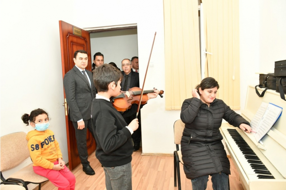 Musiqi məktəblərinə baxış zamanı müəllim kollektivi və şagirdlərlə görüş olub. Musiqi təhsili ocaqlarında istedadlı, yaradıcı potensiallı uşaqların olduğu müəyyən edilib, onların bacarıqlarının qiymətləndirilməsi və tanıdılmasının vacibliyi diqqətə çatdırılıb.