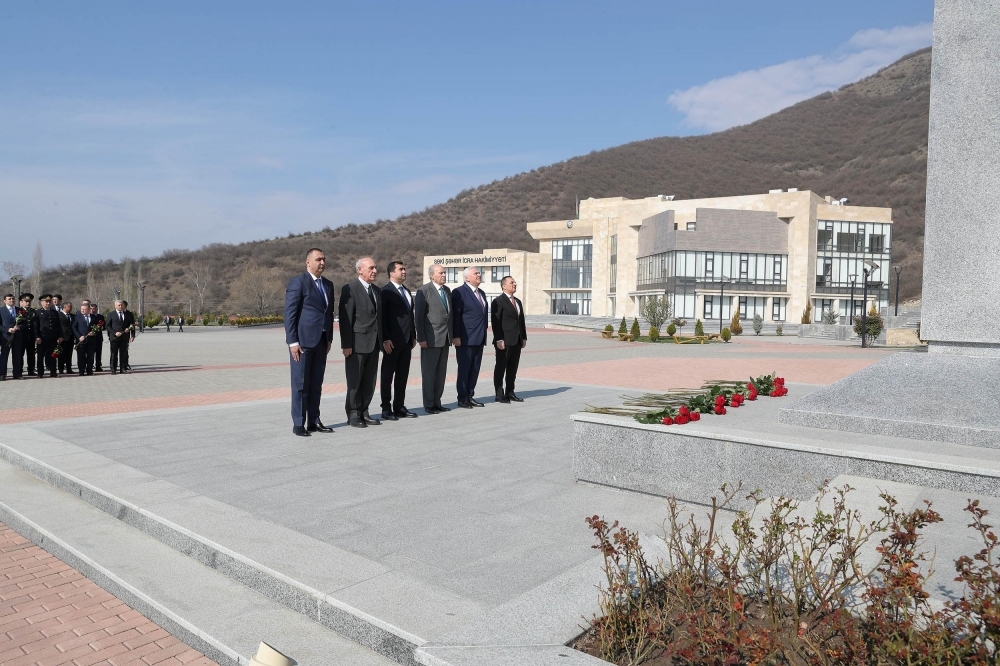 Öncə qonaqlar Şəki şəhərinin mərkəzində Ümummilli Lider Heydər Əliyevin xatirəsinə ucaldılmış abidəni ziyarət etmiş, önünə gül dəstələri qoyublar.
