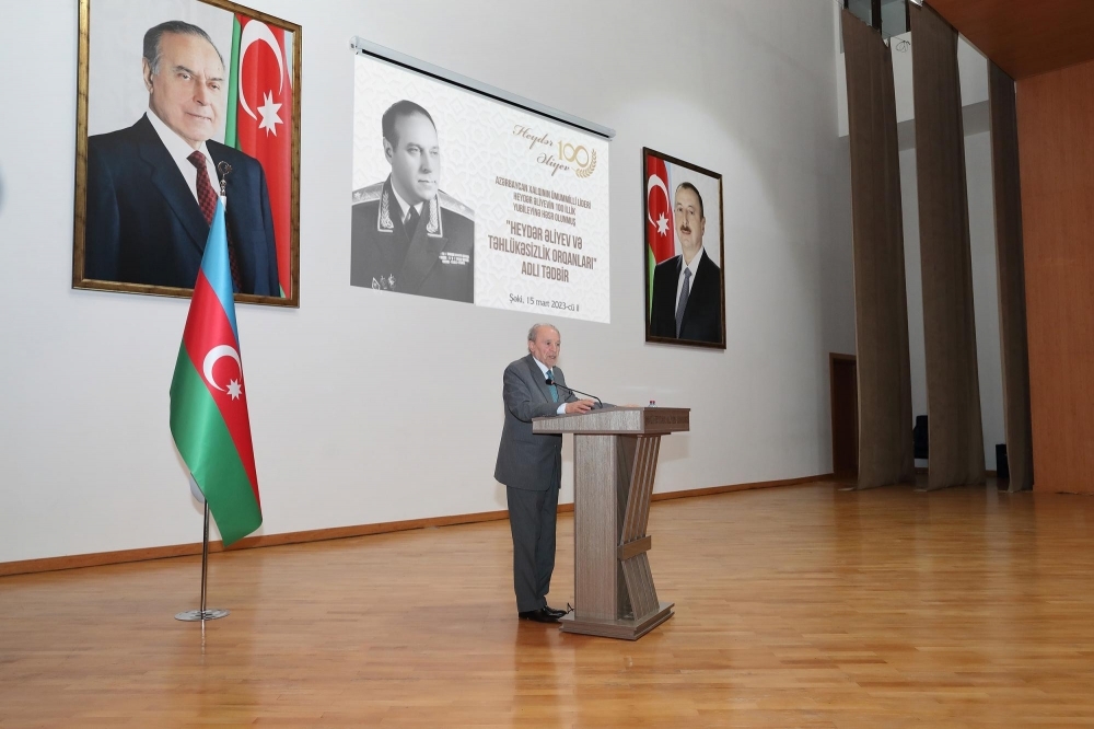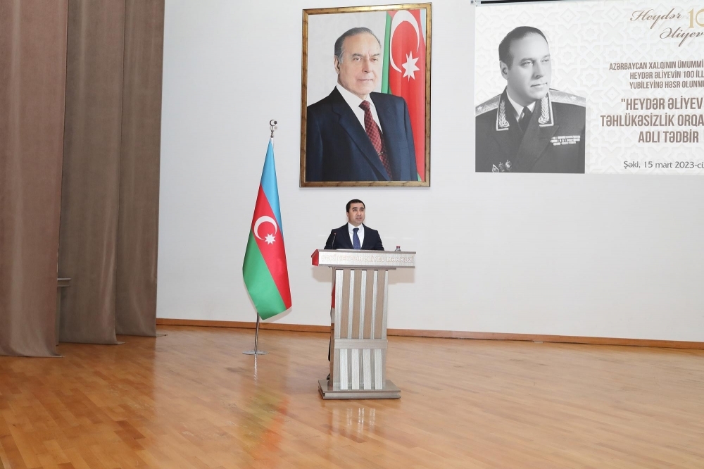 Tədbiri açıq elan edən Şəki şəhər İcra Hakimiyyətinin başçısı Elxan Usubov görkəmli dövlət xadimi Heydər Əliyevin müstəqillik illərində ölkəmizin təhlükəsizlik strategiyasının hazırlanması və reallaşdırılmasına, bu kontekstdə Azərbaycan təhlükəsizlik orqanlarının inkişafına verdiyi töhfələrdən, dahi şəxsiyyətin dövlətçiliyimiz və ölkəmizin tərəqqisi yolunda göstərdiyi əvəzsiz xidmətlərdən ətraflı bəhs edib, Ulu Öndərin 100 illik yubileyinə həsr olunan belə silsilə tədbirlərin keçirilməsinin əhəmiyyətindən danışıb.