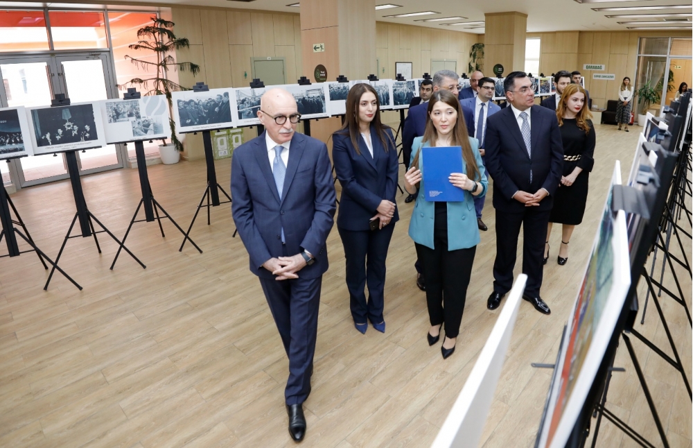 Əvvəlcə tədbir iştirakçıları Ulu Öndər Heydər Əliyevin 100 illik yubileyinə həsr olunmuş sərgi ilə tanış olublar.