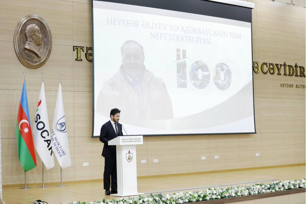 “Heydər Əliyev İli” çərçivəsində 2023-cü il martın 28-də Azərbaycan Respublikası Elm və Təhsil Nazirliyinin dəstəyi və Azərbaycan Respublikası Dövlət Neft Şirkətinin (SOCAR) təşkilatçılığı ilə “Heydər Əliyev və Azərbaycanın yeni neft strategiyası” mövzusunda mühazirələrin təşkilinə start verilib.