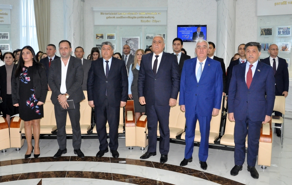 İştirakçılar ilk olaraq Azərbaycan xalqının ümummilli lideri Heydər Əliyevin və ölkəmizin ərazi bütövlüyü uğrunda canlarından keçmiş şəhidlərimizin əziz xatirəsini bir dəqiqəlik sükutla yad ediblər. Daha sonra tədbir iştirakçıları ümummilli lider Heydər Əliyevin həyat və fəaliyyətindən bəhs edən video-çarxa baxıblar.