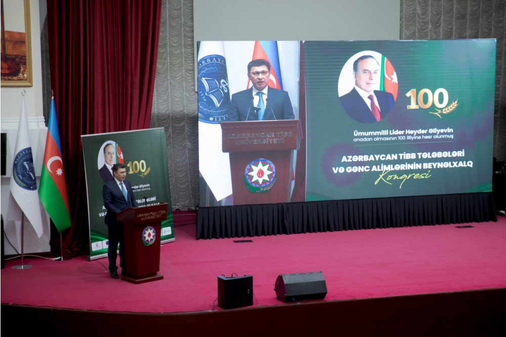 Ulu Öndərin səhiyyə sahəsində başladığı islahatları bu gün ölkə başçısı İlham Əliyevin uğurla davam etdirdiyini vurğulayan rektor, son illər ərzində Azərbaycanda səhiyyə sisteminin təkmilləşdirilməsi istiqamətində böyük işlər görüldüyünü, geniş islahatlar aparıldığını bildirib: “Tibb müəssisələrinin maddi-texniki bazası ciddi dərəcədə möhkəmləndirilib. Təkcə bu faktı demək kifayətdir ki, son 10 ildə Azərbaycanda 600-dən çox tibb müəssisəsi tikilib və ya əsaslı şəkildə təmir olunub. Azərbaycan xalqı Ulu Öndərimizi sonsuz hörmət və məhəbbətlə xatırlayır. Bu günkü beynəlxalq konqres də ümummilli liderimiz Heydər Əliyevin əziz xatirəsinə tibb ictimaiyyətinin, elm adamlarının və tələbələrimizin sonsuz ehtiramının bariz nümunəsidir”.