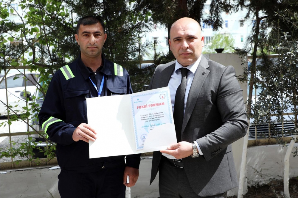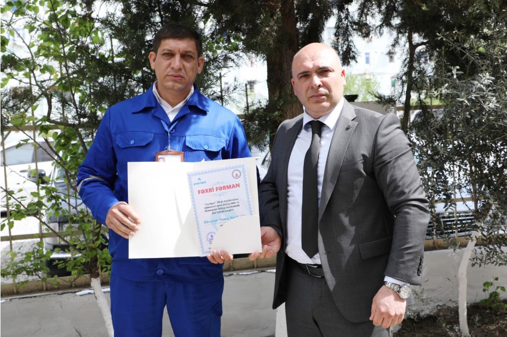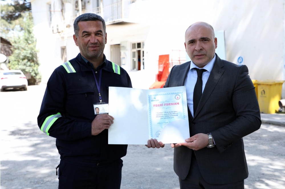 Daha sonra hər bir xidmət sahəsindən 2 əməkdaş olmaqla ümumilikdə 6 nəfər nümunəvi fəaliyyətinə görə Fəxri Fərmanla təltif olunub. Sonda baş direktorun təşəkkür və tapşırıqlarını nəzarətçi-çilingərlərə çatdıran C.Şıxəliyev onlara işlərində uğurlar arzulayıb.