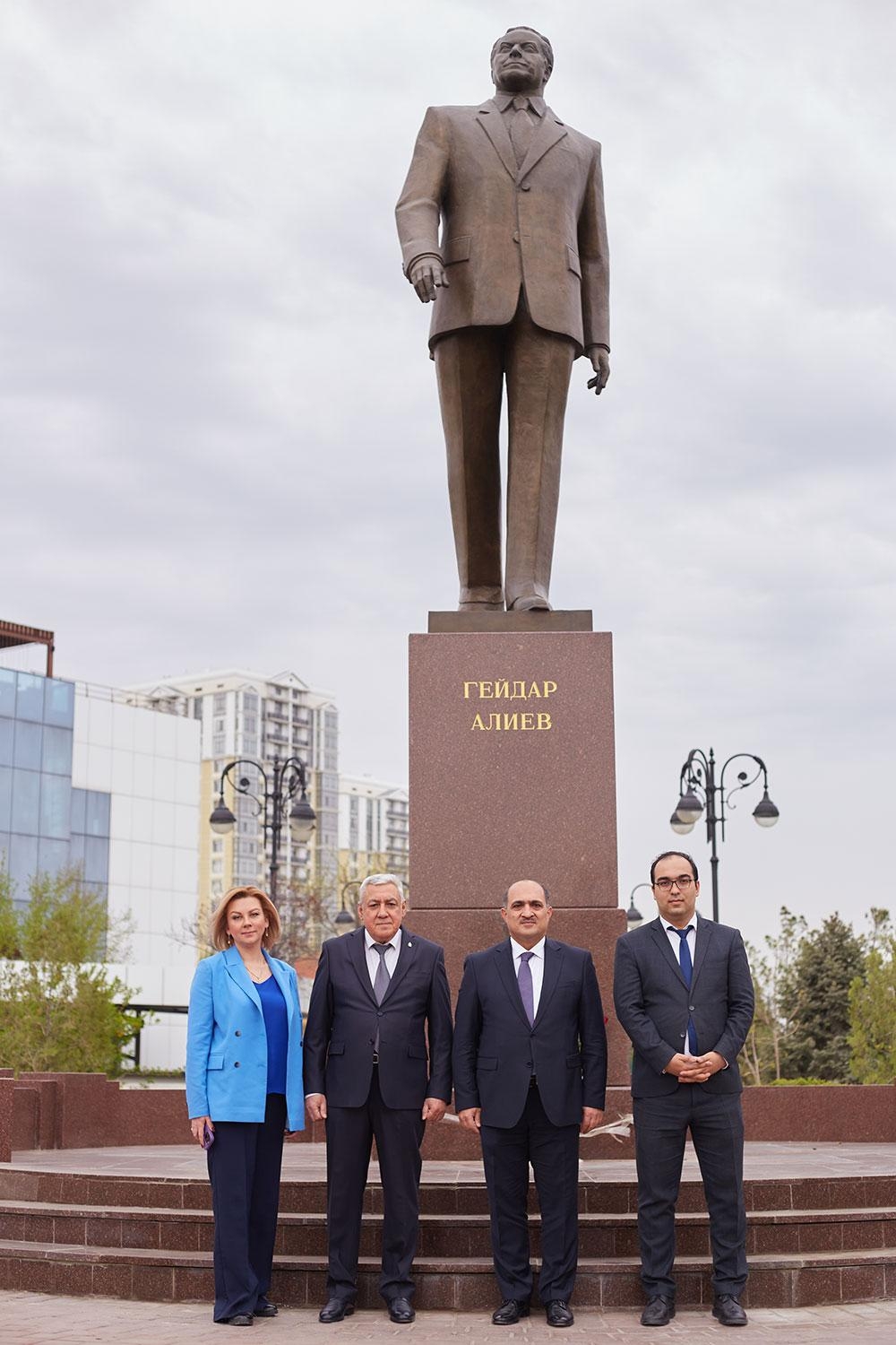 Səfər çərçivəsində əvvəlcə ümummilli lider Heydər Əliyevin Həştərxan şəhərində yerləşən abidəsi ziyarət edilib, önünə gül dəstələri düzülüb.