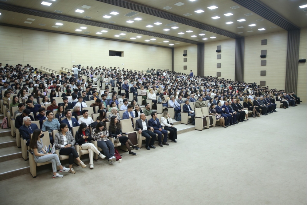 “İki sahil” xəbər verir ki, tədbir Azərbaycan Respublikasının Dövlət Himninin səsləndirilməsi və “Heydər Əliyev-Dahi şəxsiyyət” filminin nümayişi ilə başlayıb.