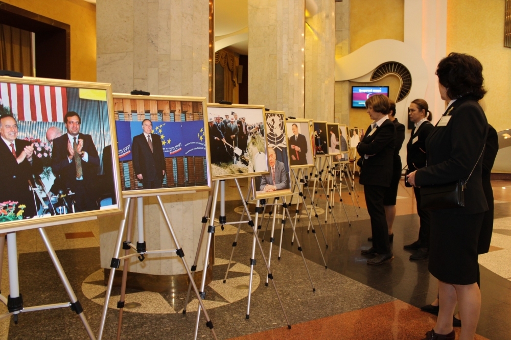İştirakçılar konsert proqramından əvvəl filarmoniyanın foyesində Ulu Öndər Heydər Əliyevin həyat və fəaliyyətinə dair geniş fotosərgi ilə tanış olunub.